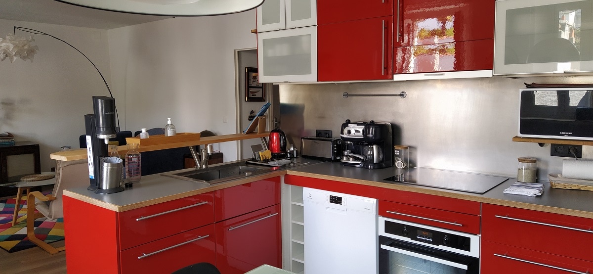 Apartamento calmo e "atípico" duplex reformado no final de 2018, em um prédio antigo, no térreo e no 1º andar, no centro da cidade de Le Palais, com entrada independente privativa. Você chegará na sala de estar com seu sofá amarelo e seu canto de descanso com tela plana. Ao lado da sala de estar, o quarto espaçoso. Para acessar o andar de cima, você vai subir uma bela escada de madeira, que o levará à cozinha bem iluminada. Ela está totalmente equipada. No mesmo andar, o banheiro.