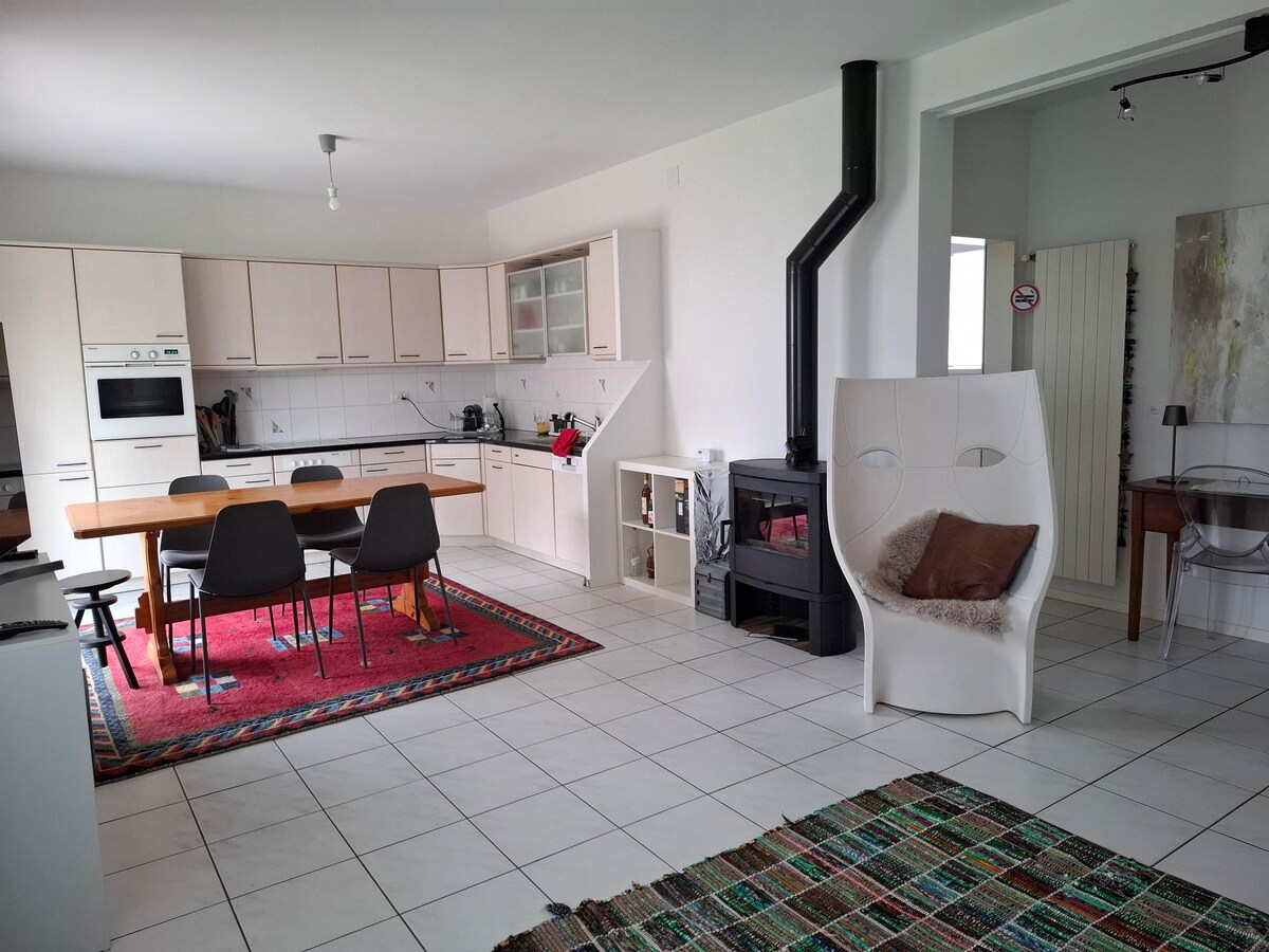 Desfrute da sua estadia em um apartamento prático, luminoso e espaçoso a cinco minutos do centro de Bellinzona, com estacionamento na garagem e servido por transportes públicos. Quarto com cama de casal e banheiro privativo com banheira. Espaço aberto com ilha de cozinha, sala de jantar, sala de estar com sofá-cama. Banheiro compartilhado com chuveiro. Estacionamento em garagem. Possibilidade de usar a máquina de lavar e secar roupa. Até 4 pessoas.