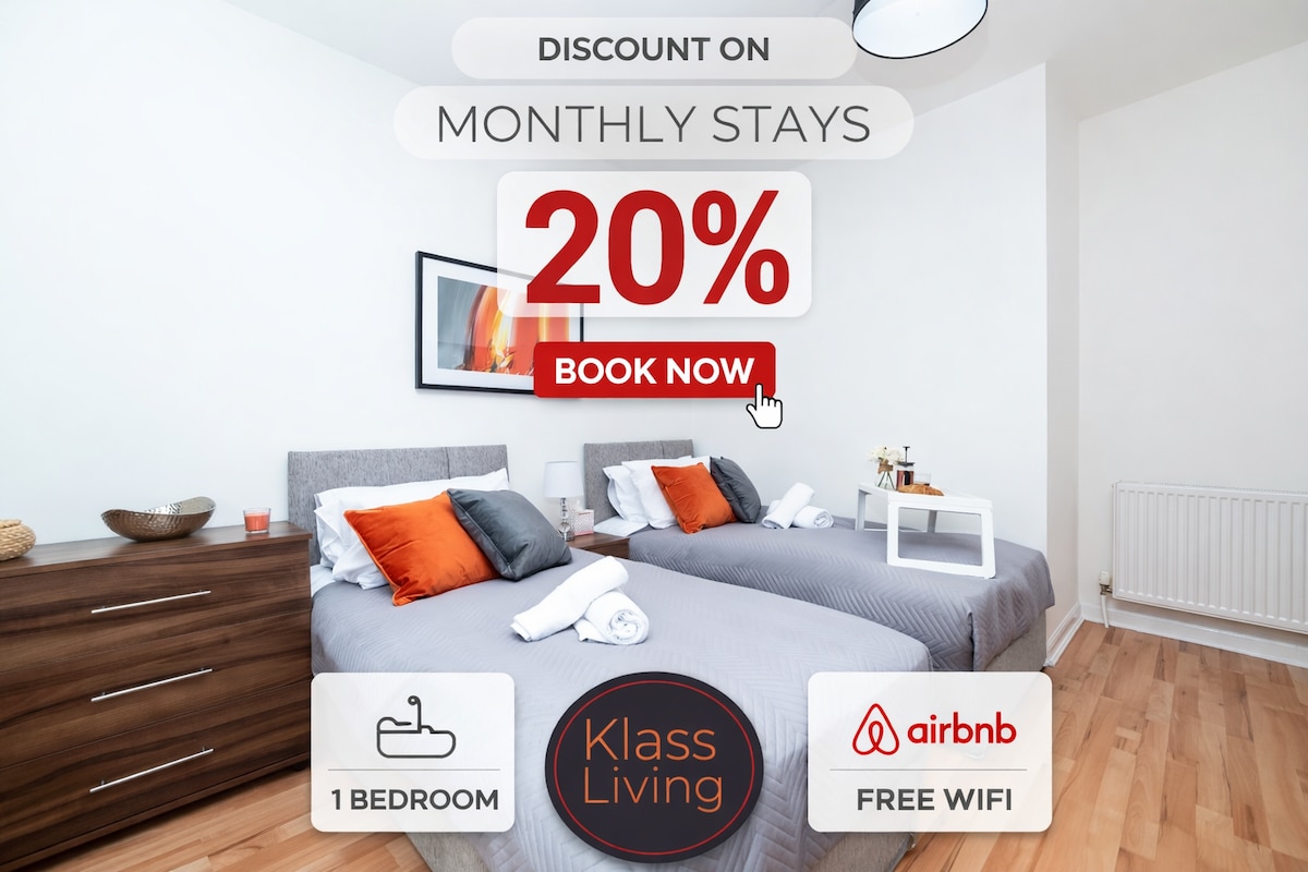 Apartamento de 1 quarto/Strathclyde Park/Wi-Fi/30% de desconto