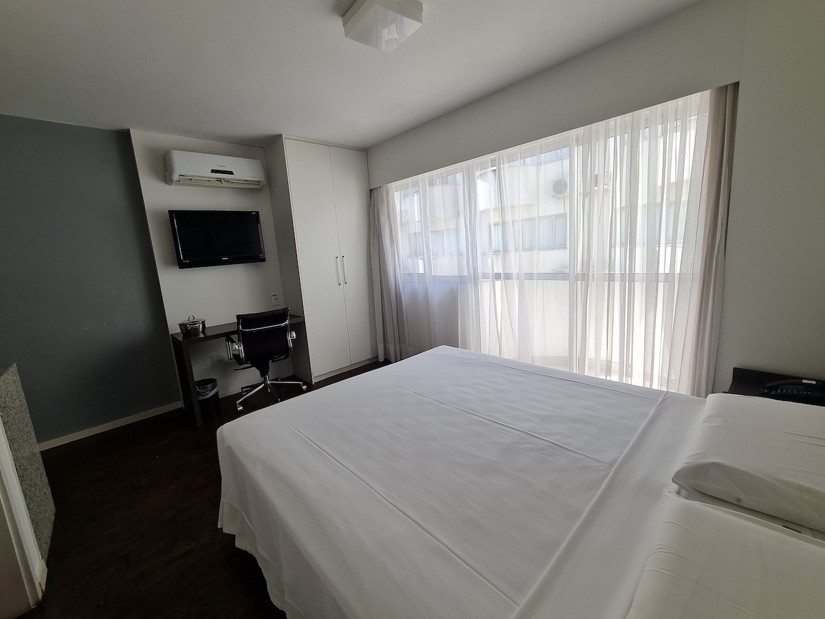 Apart-hotel no coração de Belo Horizonte, oferecendo hospedagem única, com suítes completas, banheiro com excelente ducha, televisão, sofá, geladeira, fogão por indução, air fryer e microondas. Nosso hotel oferece excelentes comodidades, como piscina, hidromassagem, sauna, e espaço gourmet. Ficamos próximos ao Shopping Cidade, Mercado Central, e circuito cultural na praça da liberdade de Belo Horizonte.