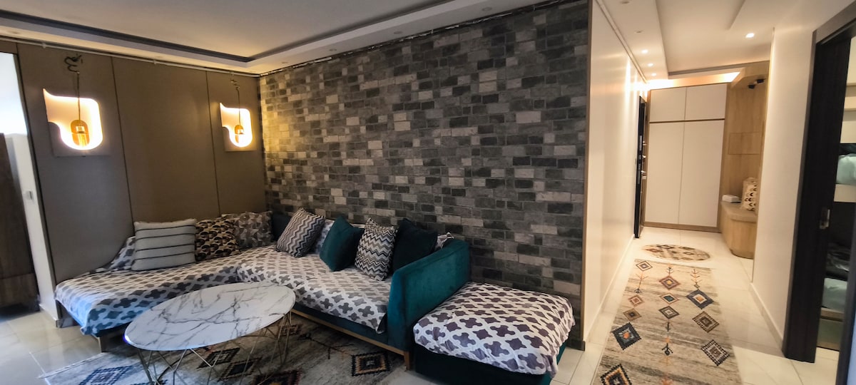 Desconto de inverno 💥🔥🔥🔥 convidado🔥🔥💥 não perca a oportunidade⭐️⭐️⭐️⭐️⭐️ Relaxe neste alojamento tranquilo e elegante com uma vista mágica de 360° para o mar, especialmente ao pôr do sol. Perto (5 minutos) da praia e do Mosta Land, o maior parque temático do Norte de África (carrossel, jardim zoológico, passeios a cavalo, bowling, safari de quad, karts, parques aquáticos); bairro seguro, estacionamento gratuito, comodidades (loja de conveniência, padaria, restaurante, mesquita, correios, autocarros e, um pouco mais acima, o elétrico e o novo hospital universitário)