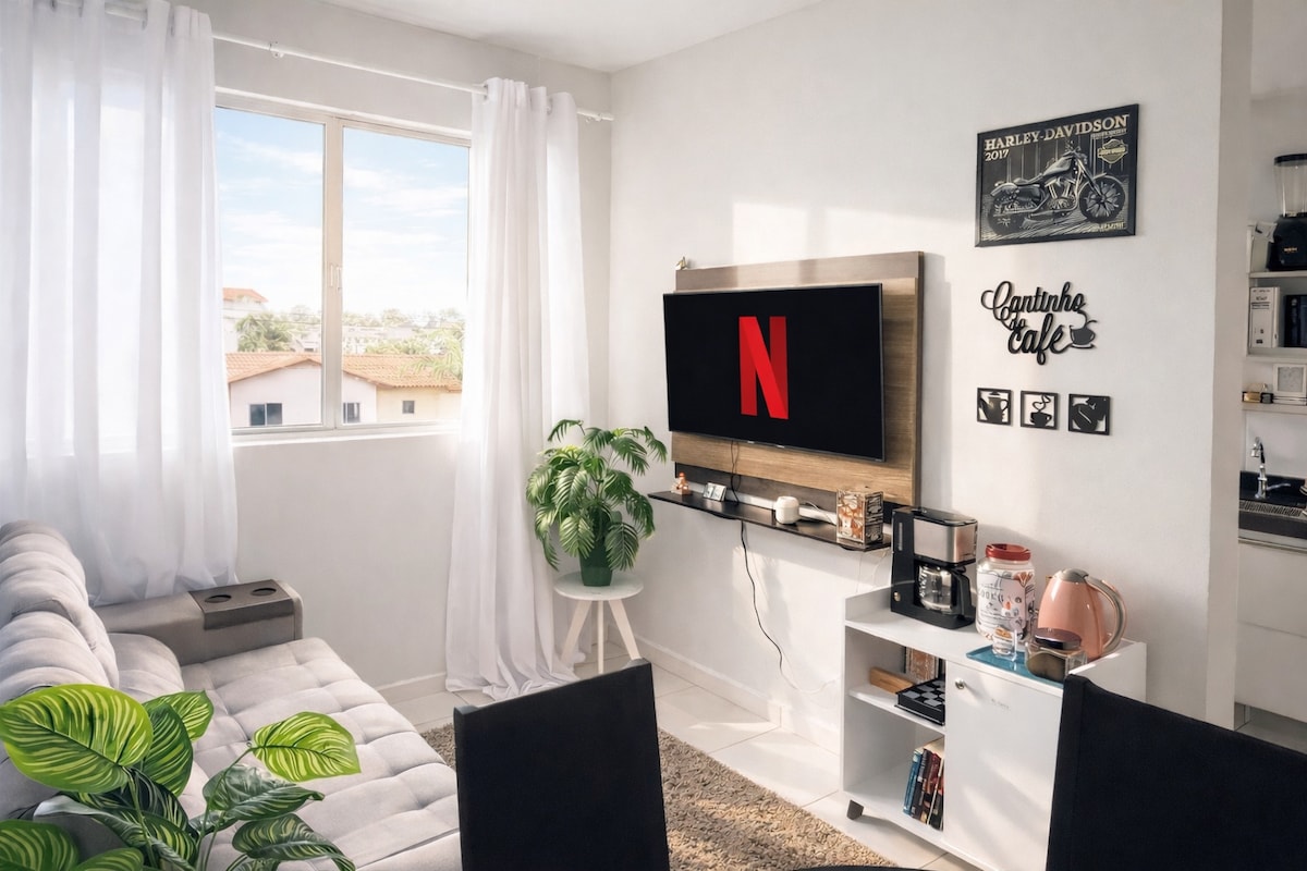 Desfrute de uma estadia impecável neste apartamento moderno, acolhedor e 100% climatizado, perfeito para casais, famílias e viagens a trabalho. Localizado em um condomínio tranquilo, silencioso e seguro, você encontrará aqui o ambiente ideal para descansar, trabalhar ou simplesmente viver momentos inesquecíveis. Cada detalhe foi pensado para proporcionar conforto total a você, desde a climatização completa até o cuidado com comodidades essenciais.