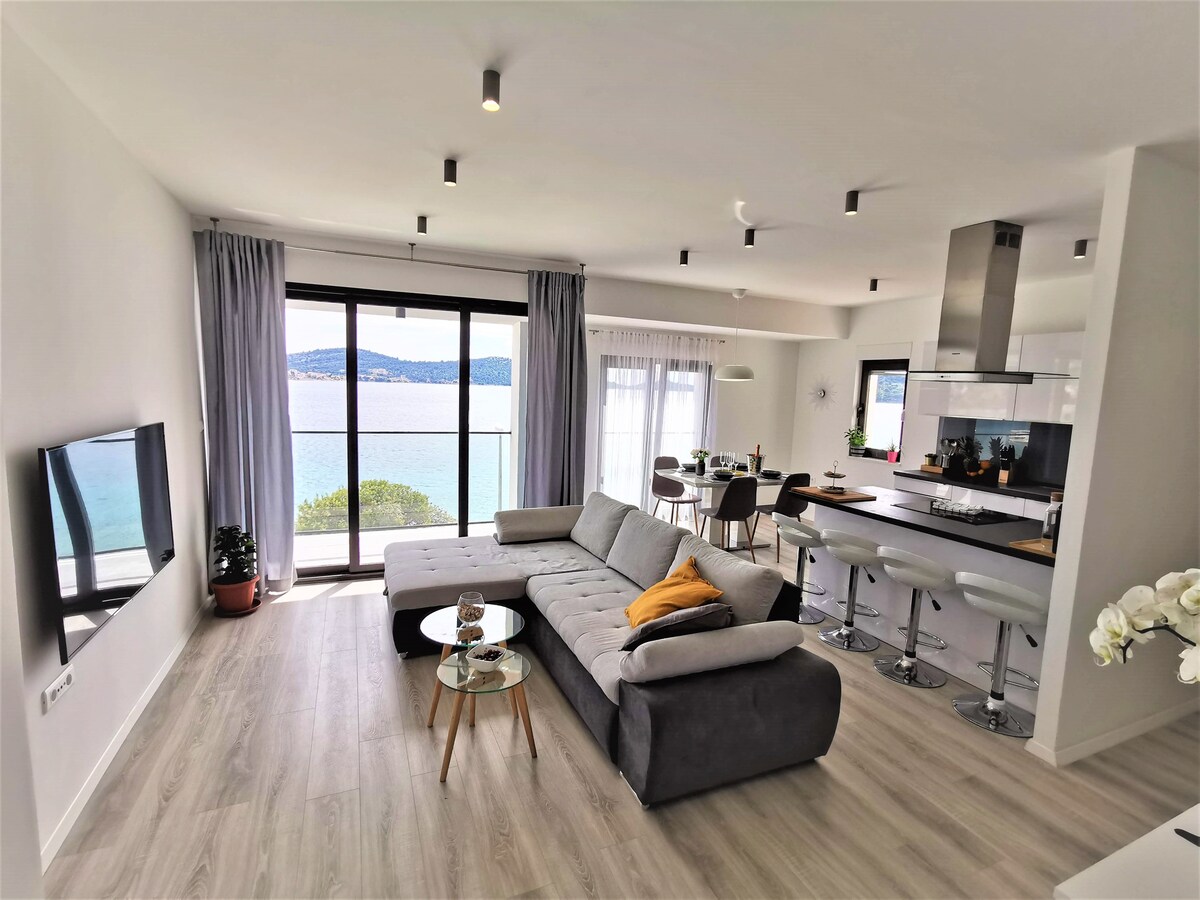 Bem-vindo a este apartamento estúdio, com vista deslumbrante para o mar, no centro histórico de Zadar. Da cama, é como em um barco! O alojamento está situado ao pé do famoso Órgão do Mar, a Saudação ao Sol, com esta vista incomparável do pôr do sol Uma vaga de estacionamento está reservada para você em frente ao edifício, no lado da rua O estúdio é novo, à prova de som, com cozinha acoplada equipada, banheiro com chuveiro e WC, varanda, TV, Wi-Fi, cafeteira O conforto da cama é garantido!