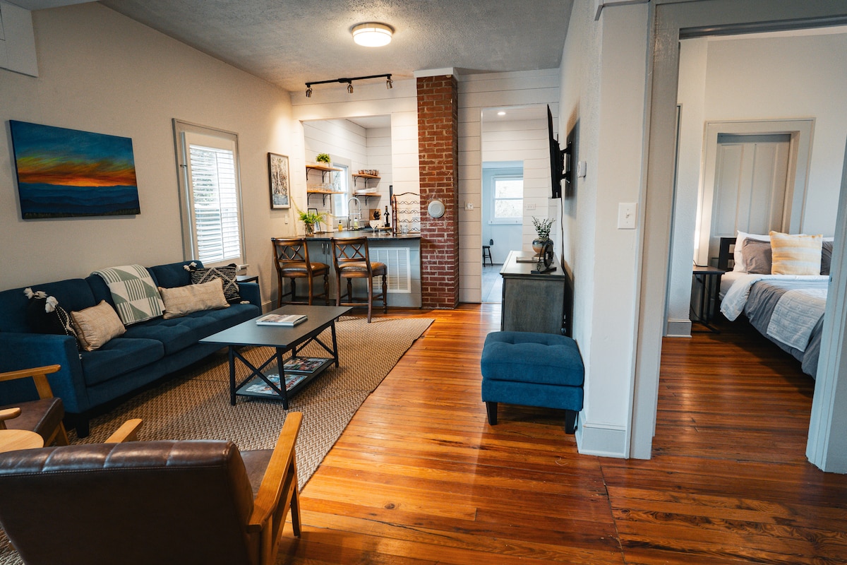 Uma casa de campo vibrante e acolhedora de um quarto em uma rua tranquila em Troutville, Virgínia, perto da Lee Highway (Rota 11 dos EUA). A varanda emoldurada de rosa, a cozinha aconchegante e o quarto confortável vão tentar você a ficar, mas sua localização também é ideal para se aventurar. A aproximadamente 20 minutos do centro de Roanoke, a menos de 1,6 km da Trilha dos Apalaches e perto da Blue Ridge Parkway e da Universidade de Hollins. Instagram: @thegreenchickadee