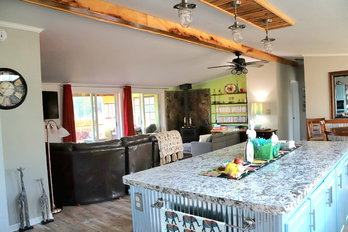 Casa inteira no lago com muito espaço para dormir para famílias. Quatro quartos e sete camas (contando duas camas de rodinha). A casa foi recentemente renovada para adicionar uma sala de sol e transformar o primeiro andar em um conceito aberto com uma cozinha espaçosa e sala de estar. Há dois conjuntos de máquina de lavar/secar no porão para acomodar grandes grupos. Atravesse a rua até Crystal Lake, passeie duas quadras até o centro da cidade para uma refeição ou fique perto do riacho e ouça os sapos à luz da fogueira.