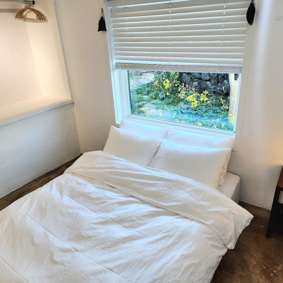 A Siot Home dá as boas-vindas a viajantes tranquilos que querem descansar, experimentar a vida local e ter uma troca calma. Todos os quartos, dos quais apenas 2 estão em funcionamento, são privados e acolhedores e oferecem uma vista para o mar aberto, onde pode ver a beleza do mar de Jeju e dos campos de tangerina todas as manhãs. No ritmo tranquilo da ilha, pode sentir o conforto e o calor de estar em casa. No quarto deste quarto, que está rodeado pelo teto e paredes com madeira hinoki de alta qualidade importada do Japão, até os hóspedes mais sensíveis podem dormir tão profundamente como um bebé. Além disso, o anfitrião prepara o pequeno-almoço com café, baguetes frescas e saladas todas as manhãs para que os hóspedes possam desfrutar plenamente de uma manhã tranquila. Desfrute do pequeno-almoço com música calma na sala de jantar com vista para o mar.