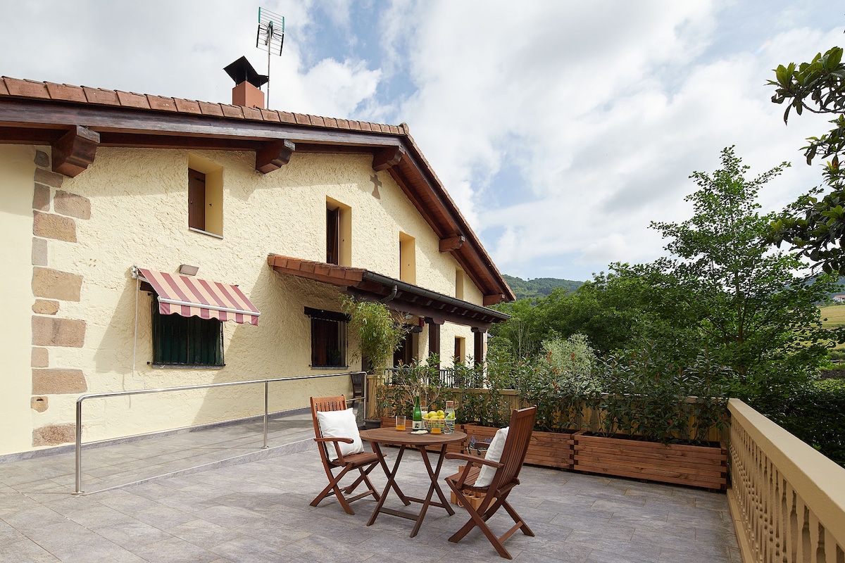 Tranquilo adosado rodeado por florestas e montanhas verdes do norte de Navarra. Tem uma cozinha completa, uma sala de estar com lareira, duas casas de banho e três quartos (5 camas). Varandas e um terraço virado a sul com mesa, cadeiras, guarda-sol e redes. O veículo está estacionado à porta da frente. A estrada de acesso permite a chegada de todos os tipos de veículos.