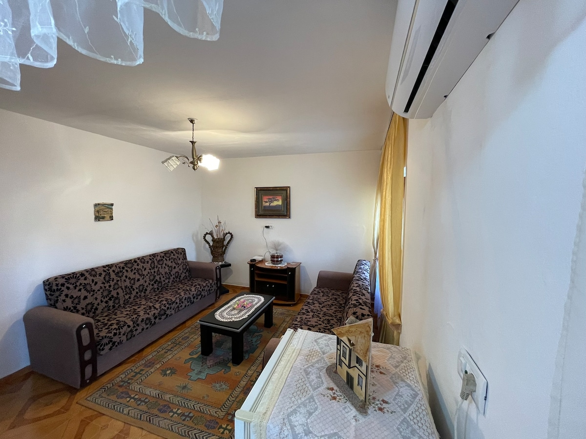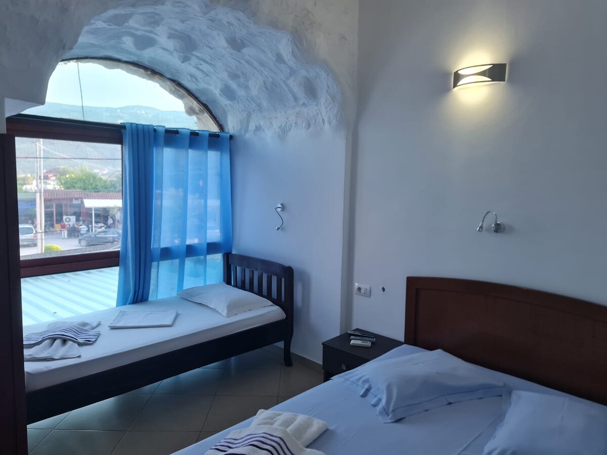 Relaxe com toda a família neste espaço tranquilo para uma estadia. Está localizado numa zona muito tranquila rodeada por árvores e a 5 minutos do centro e do castelo com vista para a bela cidade de Berat e com estacionamento privado e um ambiente tranquilo que lhe oferece uma casa de hóspedes irvin