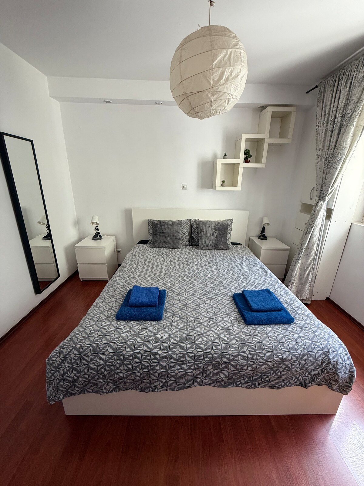 Este apartamento está localizado numa localização excelente, perto de supermercados, Jardim Botânico de Bucareste e Centro Comercial AFI. Com 1 quarto com cama king size, 1 casa de banho com banheira e chuveiro acima, uma grande sala de estar com sofá-cama, uma cozinha totalmente equipada e uma varanda com vista panorâmica. Concebido para proporcionar um espaço confortável para casais, famílias, viajantes individuais ou de negócios que procuram uma estadia memorável. O apartamento tem check-in autónomo e estacionamento privado, para que possa chegar quando quiser.