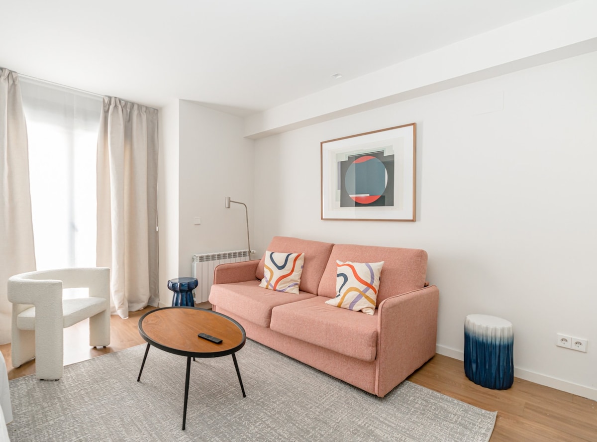 Você pode nos encontrar no Bairro Salamanca Madrid, uma das melhores áreas da cidade. Estúdio recentemente renovado com estilo moderno e toque tecnológico. Cozinha totalmente equipada, banheiro, sofá, cama de casal, A/C, aquecedor. Tudo o que você precisa, tudo em um. 6 linhas de metrô: 3 minutos a pé da estação de metrô Diego de Leon 7 minutos chegam ao Metro Avenida America 12 minutos chegam a Manuel Becerra Você terá uma experiência caseira e confortável com muitas recomendações para garantir que você tenha um tempo maravilhoso em Madri.