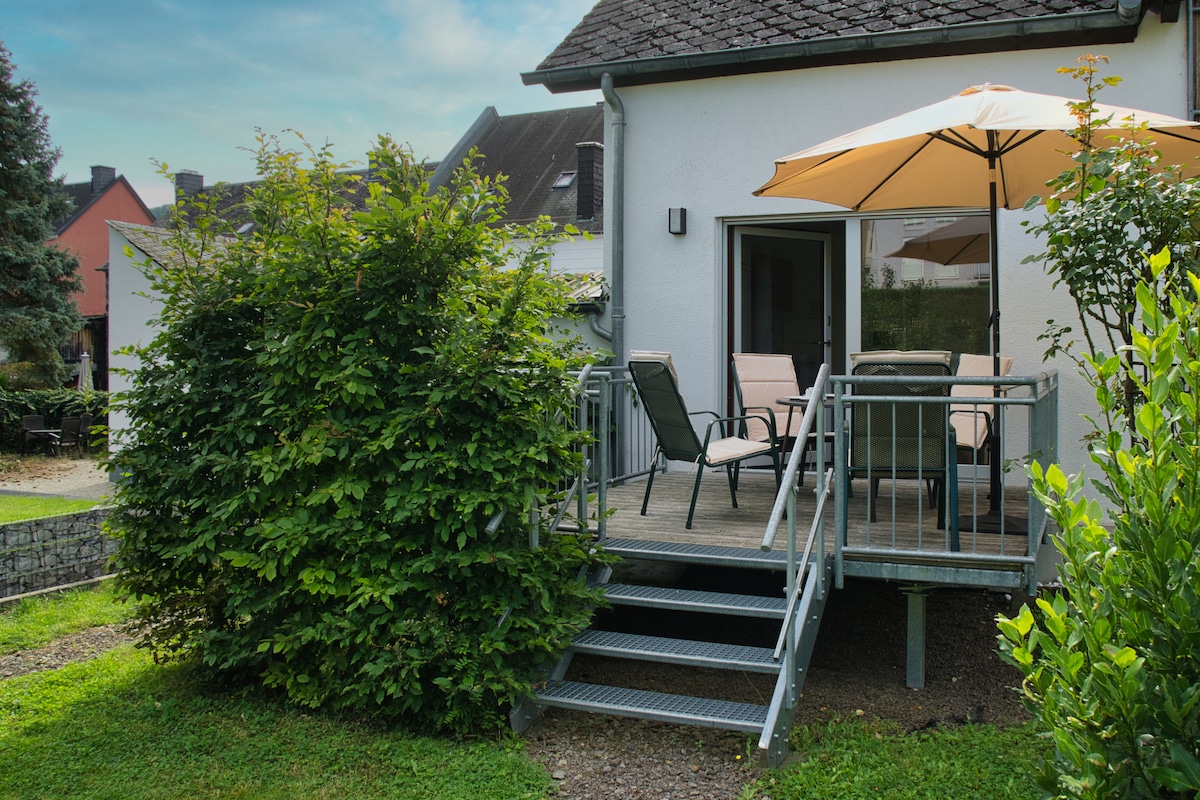 Pequena e elegante casa de hóspedes de 1 quarto com ar condicionado no verde, ao lado da linha férrea Trier - Koblenz e mesmo ao lado da área de trilhos e recreação Meulenwald. Para Trier de carro arrond 18 min (também de autocarro e comboio). O rio Mosel fica a caminho de Trier. Aeródromo desportivo, campo de golfe nas proximidades. A 10 km do lago recreativoTriolage (desportos aquáticos). É possível aproximar-se de comboio (pedir transferência). Pista de bicicleta em frente.