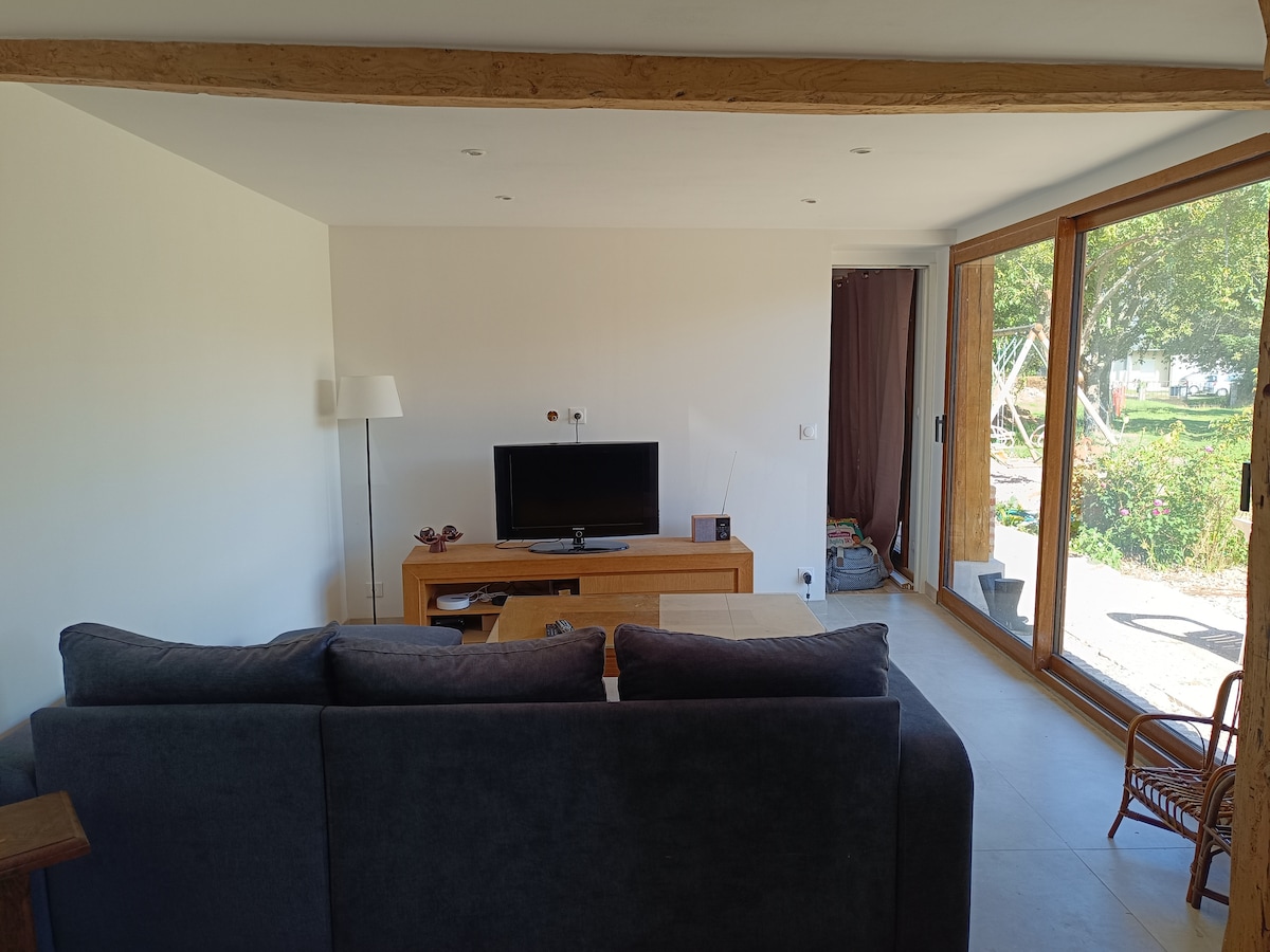 Na nossa residência principal, o seu gîte totalmente independente banhado pelo sol num oásis de vegetação a 10 km do pitoresco porto de Honfleur e de outros locais turísticos é um lugar tranquilo ideal para descansar, como casal ou com um bebé. Por uma pequena taxa, pode vir com 3 pessoas, tem um sofá-cama confortável na sala de estar. Estacionamento ao pé da casa de campo. Cancelamento gratuito. Cama feita à sua chegada, Wi-Fi gratuito.