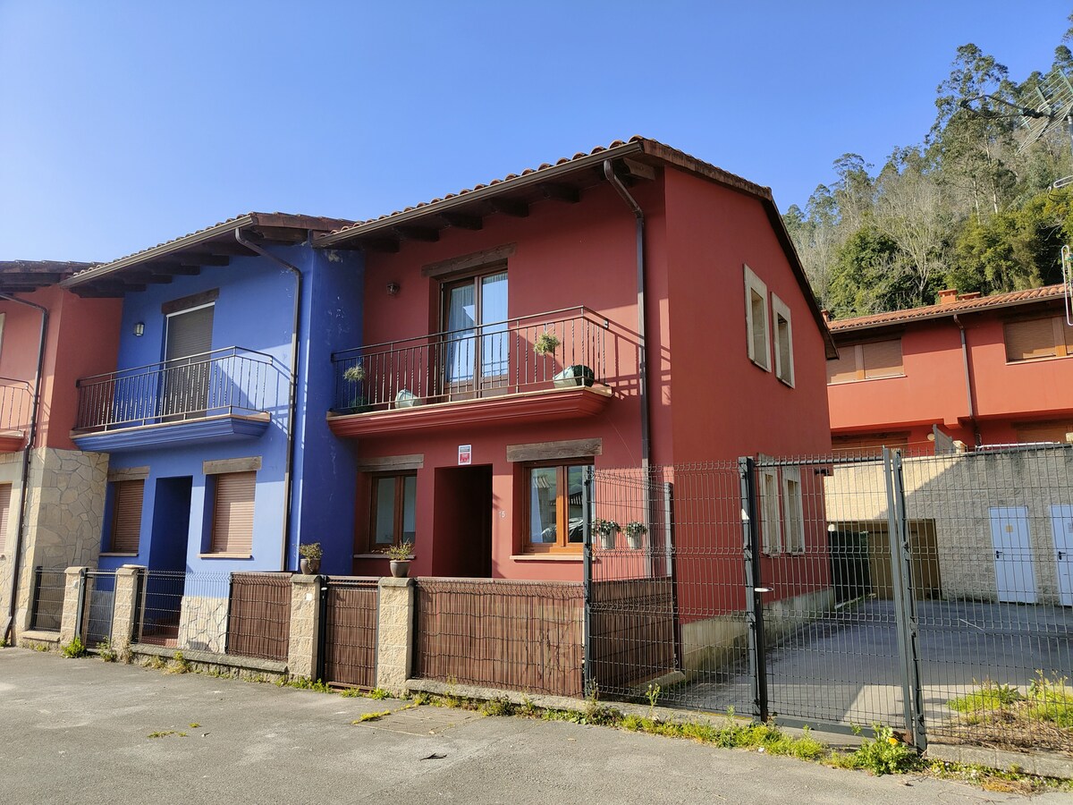 Moradia geminada de 3 andares alugada em Santillana del Mar, a 2 minutos a pé do centro histórico. É composto por 2 quartos, um com uma cama de 135 cm e outro com 3 camas, 2 delas num loft coberto baixo. Tem cozinha, sala de estar e 2 casas de banho com chuveiro. Na parte inferior há outra cozinha com uma mesa grande, máquina de lavar roupa e máquina de lavar louça. Temos berço de viagem e cadeira para crianças. O exterior tem um jardim com churrasco. A casa tem lugar de estacionamento privado Wi-Fi. Não são permitidos animais de estimação.