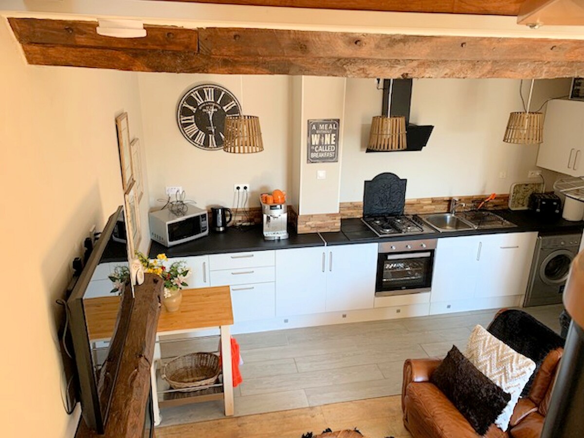 Um antigo celeiro de sidra renovado, com muitas vigas de caráter original. Um lounge acolhedor e uma cozinha bem equipada estão localizados no térreo. O acesso ao primeiro andar é por uma escada em espiral, levando a um grande quarto aberto e banheiro, além de uma banheira separada localizada em um pequeno mezanino.
