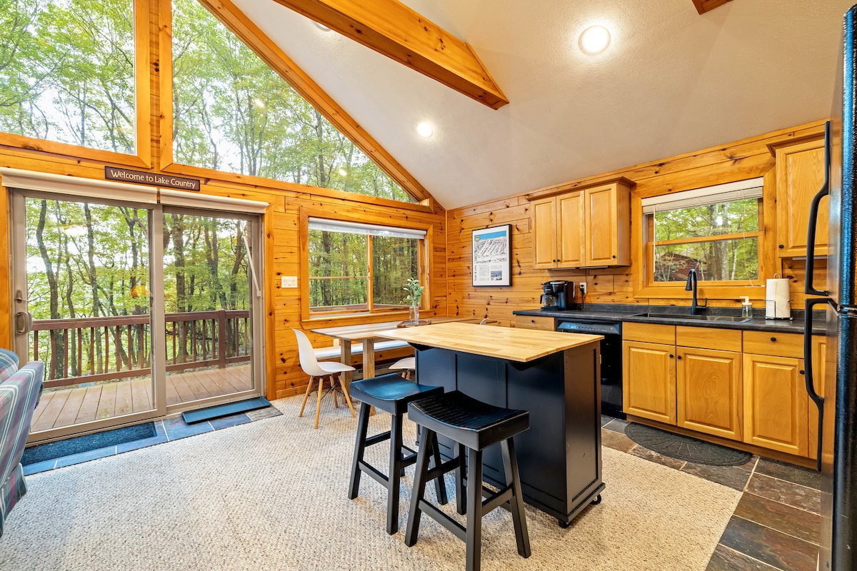 Venha relaxar no Vista View - uma cabana contemporânea única de 1970 no coração do Lago Harmony! A casa elevada e o grande deck envolvente farão você se sentir como se estivesse hospedado em uma casa na árvore. Desfrute da banheira de hidromassagem privativa com vista para a floresta, da lareira ao ar livre, do acesso ao Lago Harmony e à Praia LH e muito mais! Central para os Poconos, Lake Harmony situado entre Boulder View e Jack Frost Mountain com "Restaurant Row" e Split Rock Water Park bem perto. INTERNET DE ALTA VE e Netflix fornecidos