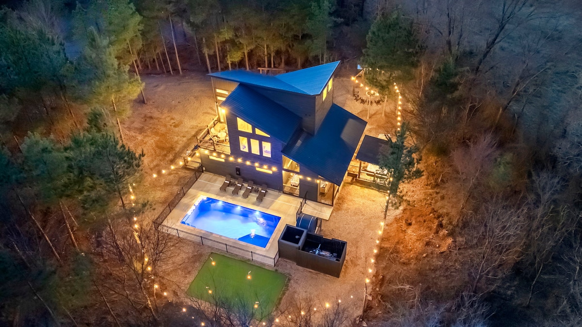 Cabana de luxo Broken Bow | Piscina com banheira de hidromassagem e pickleball