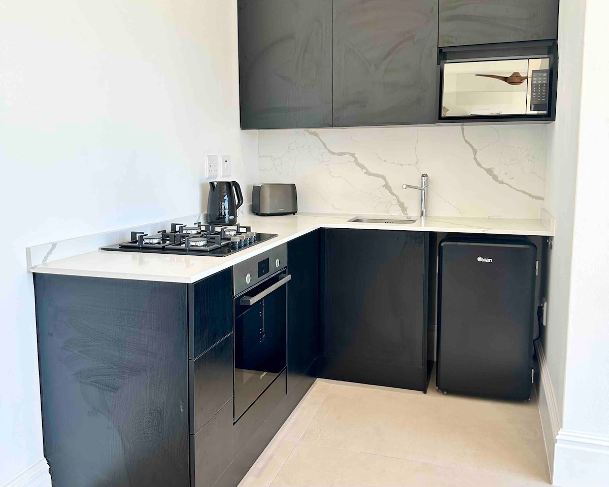 Apartamento de luxo com decoração de alta qualidade para 2 pessoas em Somerset West, localização privilegiada. Fachada de vidro panorâmica de 10 metros de comprimento com vista para as montanhas e o mar. O apartamento tem uma sala de estar com cozinha, banheiro e um quarto. Estão disponíveis uma máquina de café Nespresso, torradeira, chaleira, secador de cabelo, toalhas e roupa de cama. Cama king size extra longa e televisão. A piscina e as instalações ao ar livre são de uso comum e, mediante acordo, também podemos oferecer sauna e jacuzzi.