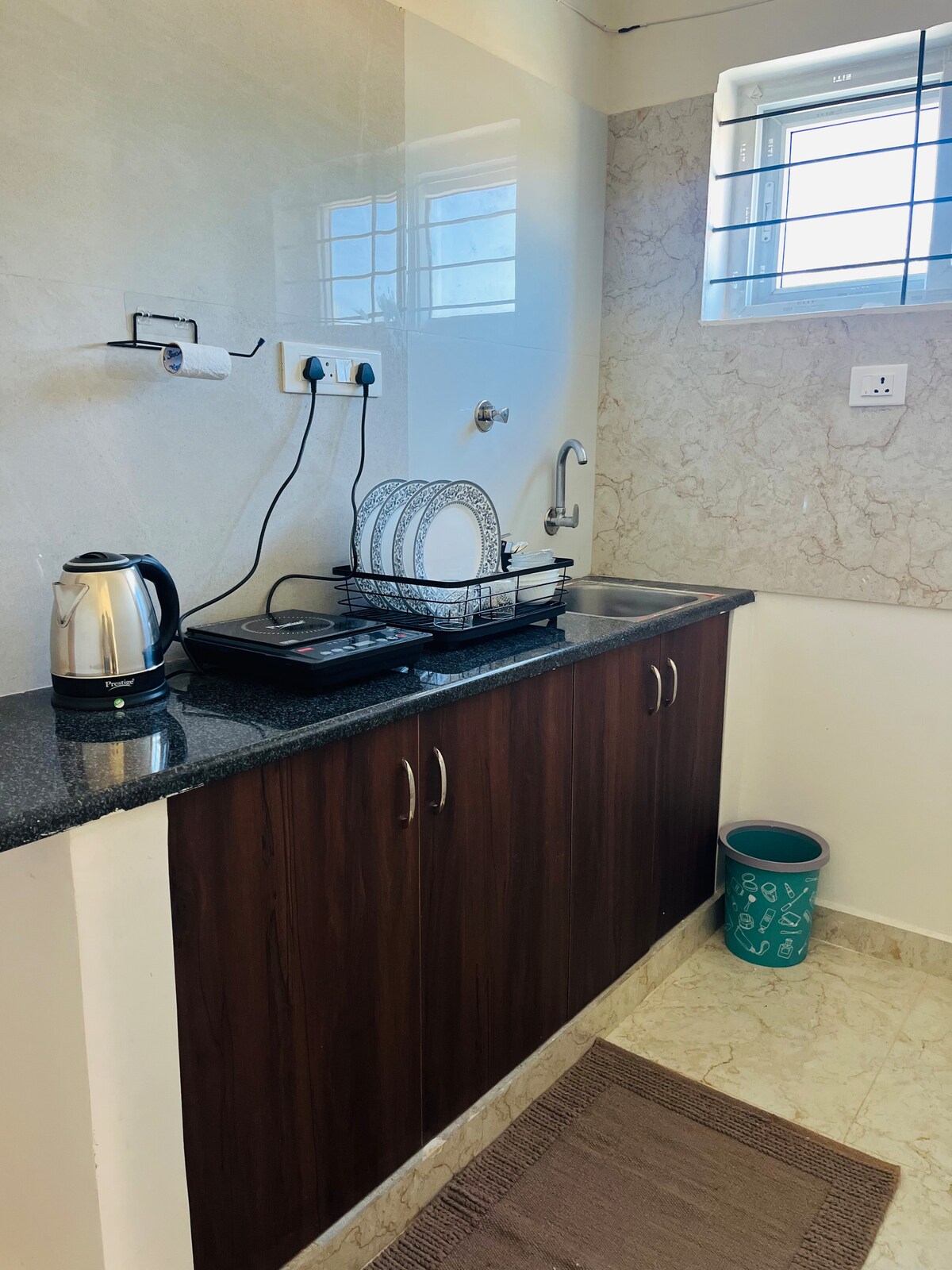 Uma espaçosa casa de 1 BHK ideal para viajantes solitários, casais, famílias e idosos. Possui uma cozinha totalmente equipada, área de jantar, frigorífico, máquina de lavar roupa e reserva de energia. O edifício está protegido com CCTV na entrada para sua segurança e tranquilidade. O amplo espaço do quarto garante uma estadia confortável, seja de curta ou de longa duração. Convenientemente localizado perto do aeroporto, perfeito para estadias de trânsito também.