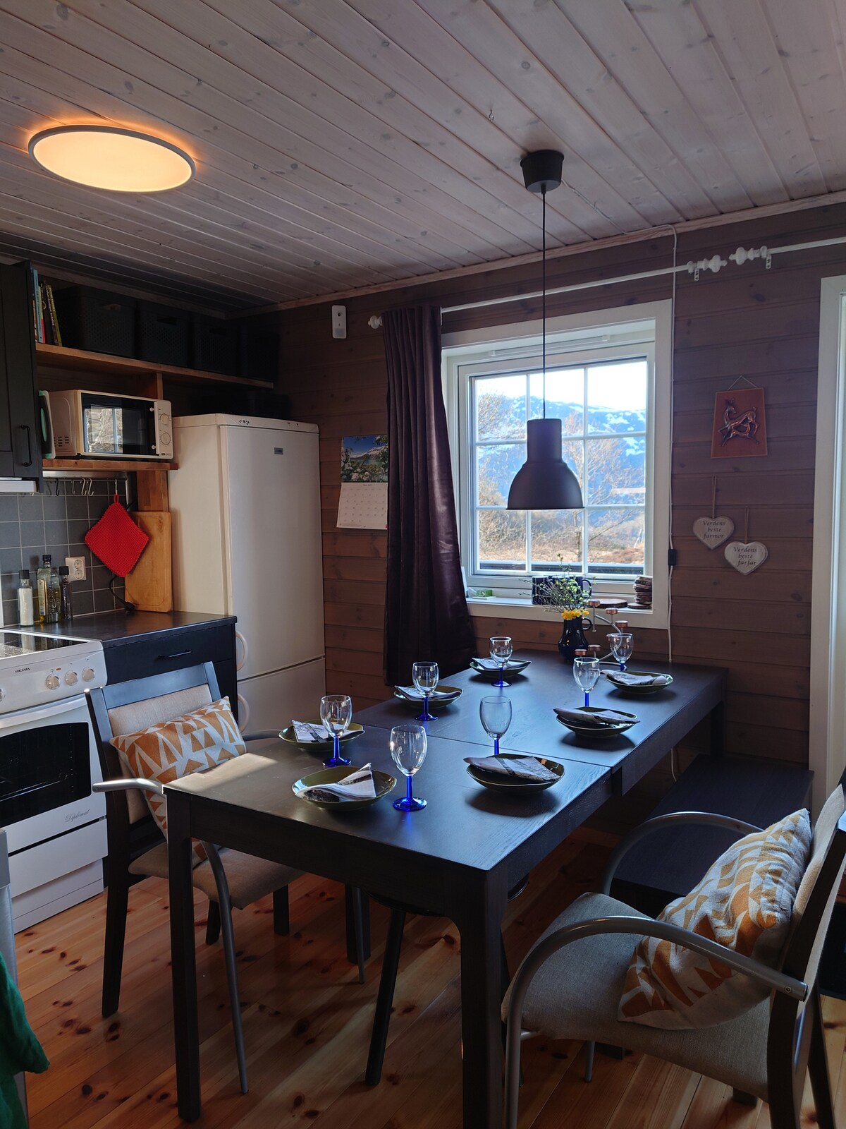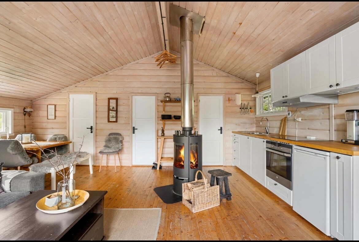 Esta é uma cabana tranquila, virada para sul, com uma vista agradável da natureza norueguesa. A eletricidade é limitada ao sistema de painel solar de 12V, usado principalmente para frigorífico, luzes e TV. Há um conversor de 230V, 1000W, onde pode ligar carregadores de telemóvel, PCs, aspirador de pó, etc. A cabana não tem água corrente e a água potável é fornecida em bidões de 25 litros. O calor vem da lareira. Sanita de compostagem. Chuveiro acionado por bomba de pé. Placas de aquecimento e forno a gás propano. Isto é viver a sustentabilidade.