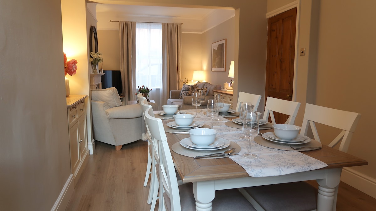 Sobre este espaço: - Localização central fora das muralhas da cidade. - Propriedade de 2 quartos, com a opção de dormir 6 num sofá cama - Cozinha completa, com eletrodomésticos modernos. - Vida luxuosa com Sky TV, Netflix, + Wi-Fi incluído - Sala de jantar espaçosa, mesa para assento 6 - Casa de banho deslumbrante. - Estacionamento gratuito na rua