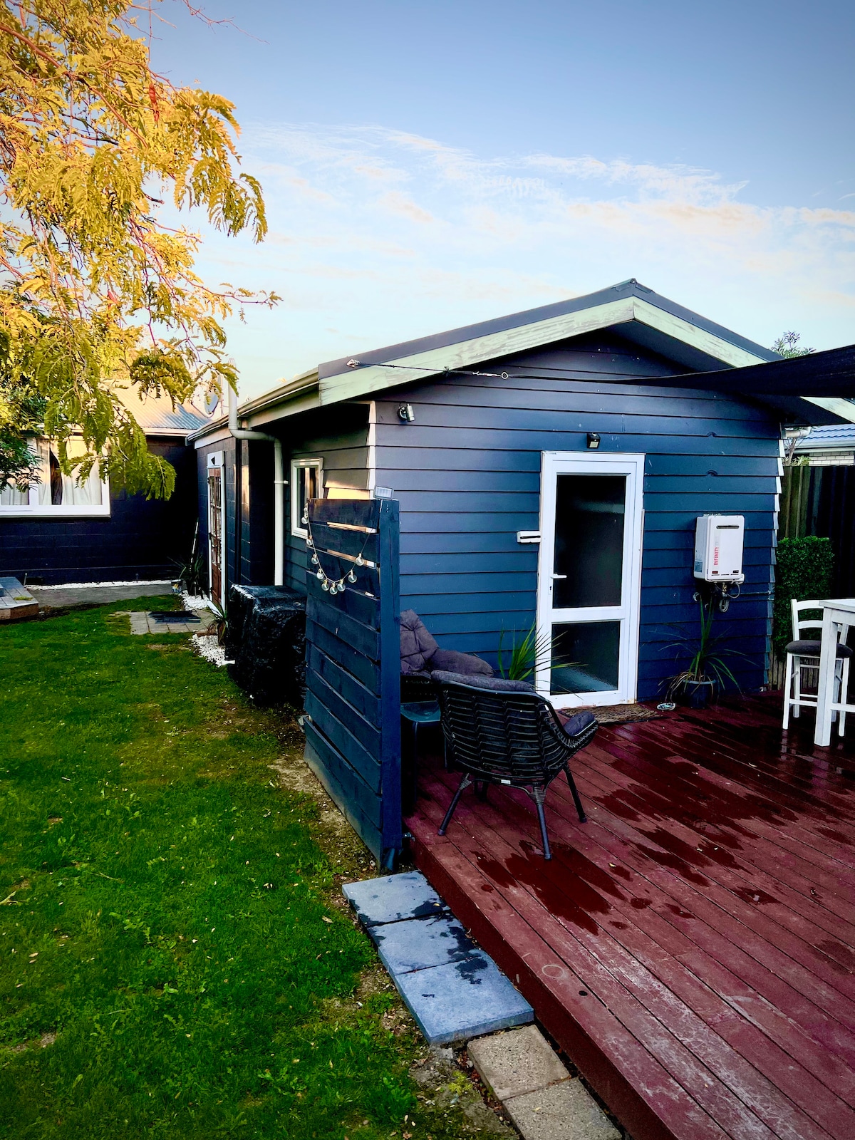 Relaxe neste espaço calmo e elegante a apenas 8 minutos de carro do centro de Blenheim ou a 10 minutos do aeroporto. O apartamento está localizado em um jardim estabelecido; abra as portas e deixe o ar fresco entrar ou deite-se na cama e desfrute do canto dos pássaros. Totalmente independente com tudo o que você precisa para ser auto-suficiente, mas ótimos restaurantes nas proximidades. Os anfitriões no local oferecem sugestões para explorar a área, ou mais um campo, mas também respeitam sua privacidade.