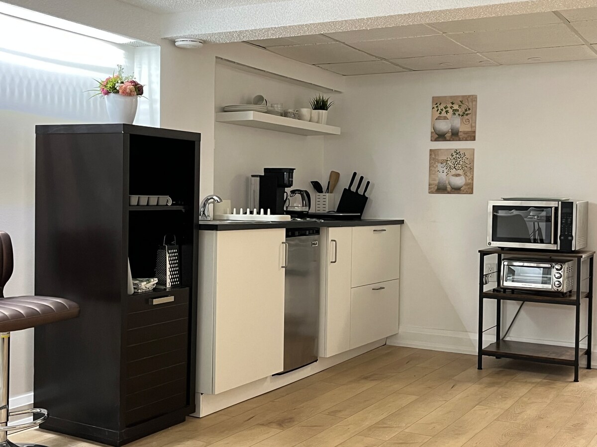 Desfrute de uma experiência elegante no bairro de Bloor West/Junction. A apenas 2 minutos a pé de uma paragem de autocarro TTC, este espaço luminoso e bem concebido tem acabamentos frescos que o tornam um retiro confortável e conveniente. Kitchenette totalmente equipada. Quarto confortável com cama queen repousante e sofá-cama na área de estar. Sala de estar espaçosa com lareira, TV e zona de treino leve. Casa de banho limpa e moderna com chuveiro com box. Estacionamento privado. Infelizmente, não é adequado para fumadores, mesmo no exterior.