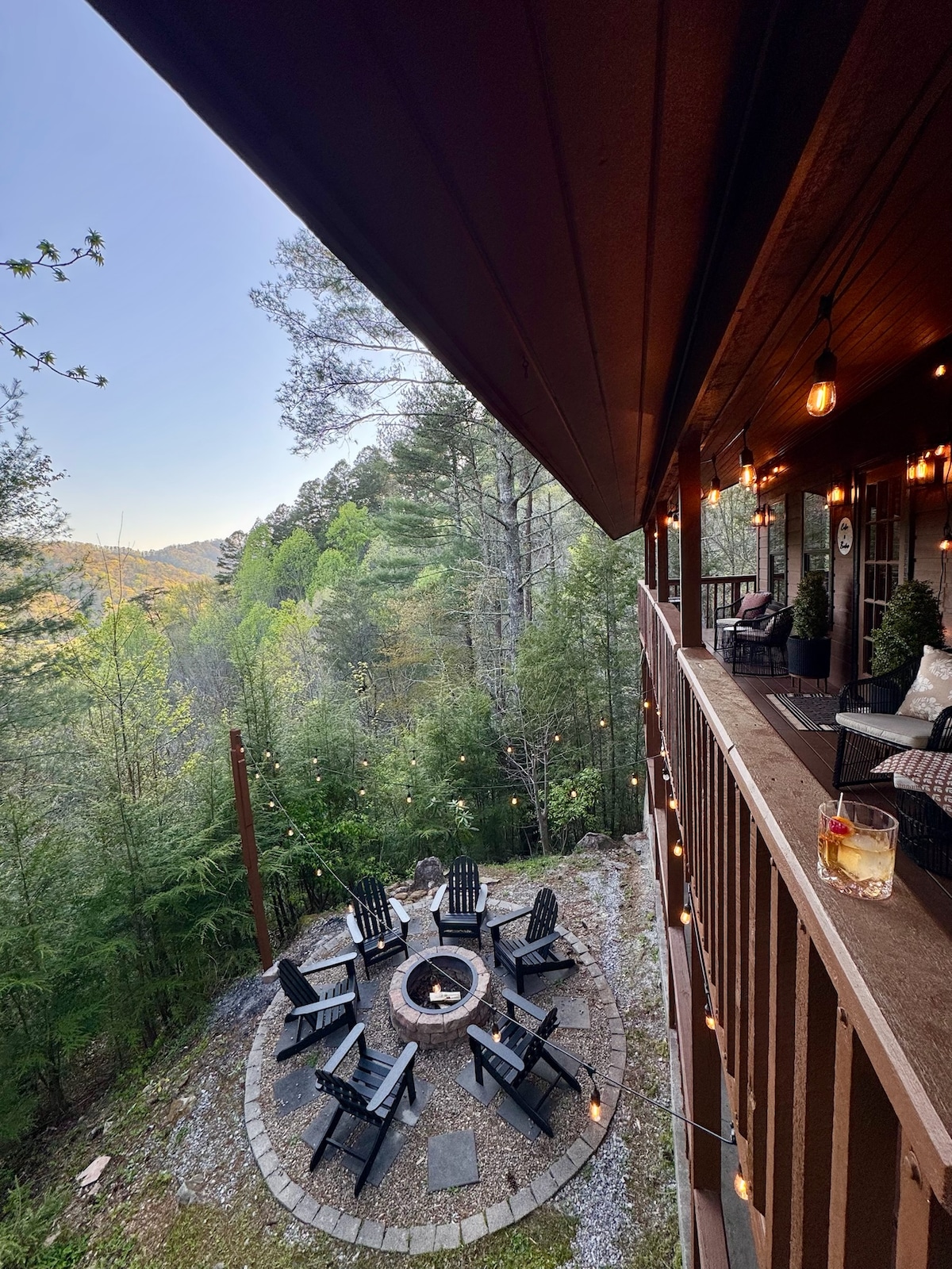 ✔5 quartos *privados* Design moderno✔ rústico ✔Fire Pit Cabana ✔de jogos independente Wi-Fi ✔de alta velocidade <800+ Mbps ✔Janelas da catedral ✔Cozinha do Chef Deck ✔grande e churrasqueira ✔Banheira de hidromassagem Piscina ✔comunitária Lago de✔ pesca com libertação Com privacidade e espaço para passear, este oásis de montanha é um retiro de cabana acolhedor. Quando chegar a hora de se aventurar e explorar as Smoky Mtns, está *a apenas 3,6 milhas* do Parque Nacional [a Airbnb adicionou IA ao anúncio, NÃO são 40 milhas]. Este refúgio no topo das árvores é uma mistura perfeita de conforto e conveniência.