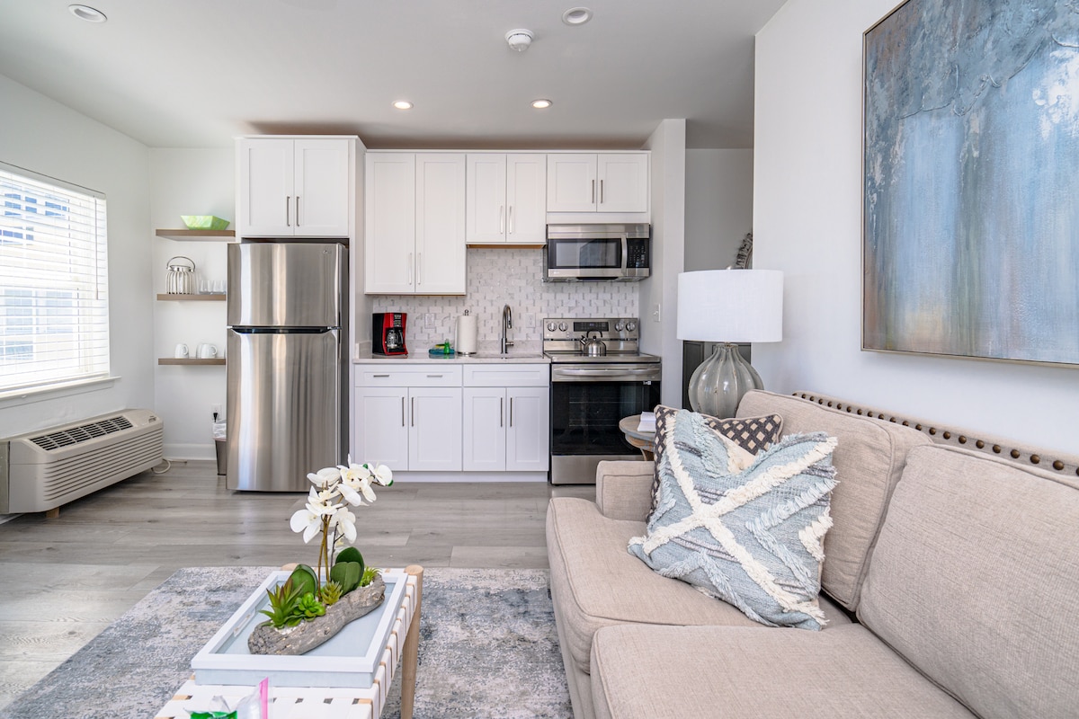 Steps from the beach, The Seagrove Studio is the perfect place for a family holiday, romantic getaway, or remote work. Neighbored by an organic cafe, local-favorite restaurants, and a fresh seafood market, the modernized space includes luxurious linens, a well-equipped kitchen, dedicated workspace, Samsung Frame smart TV, Nespresso machine, and beach chairs. Enjoy your morning coffee in an Adirondack chair on the private patio or take the short walk across the street to the world-class beach 🏖.
