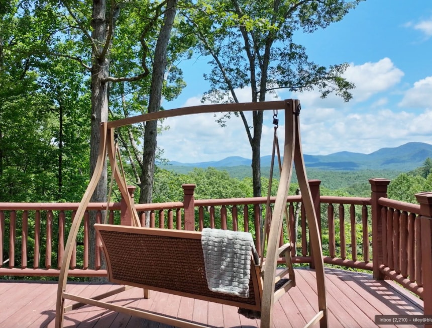 Venha relaxar na nossa Treehaus. É um novo loft de 2 quartos e 2 casas de banho com vistas incríveis para a montanha. Voltado para oeste para pôr-do-sol incrível. 3 camas king size com espaço amplo para acomodar um grupo de 6. Banheira de hidromassagem, lareira, grelhador, baloiço na varanda da frente e sofá ao ar livre. A nossa casa tem uma tomada de 240 volts para ligar o seu veículo elétrico e muito estacionamento na entrada. Todas as estradas pavimentadas até à propriedade e apenas 14 minutos até ao centro de Blue Ridge. Número de licença de anfitrião STR: 001770