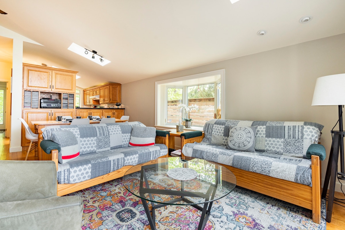 Tucked away among mature trees our charming Yellow Cottage offers privacy and a peaceful setting. The property includes parking for two vehicles and a fire pit in the yard-perfect for gathering under the stars and enjoying quiet evening campfires. Inside, the cottage blends rustic charm with refined comfort, featuring cathedral ceilings and a warm, open concept living space. The cottage comfortably sleeps guests in a private bedroom or an open loft each with a queen bed.