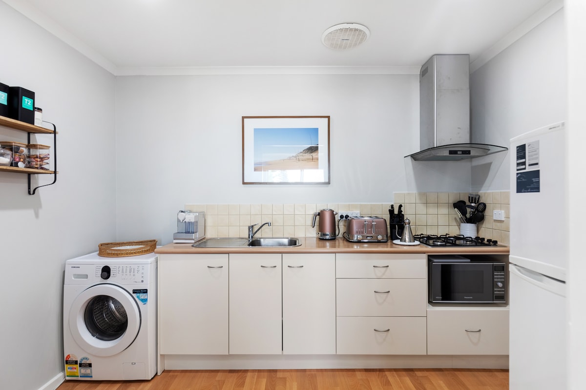 Que descoberta! Encantadora unidade privativa independente, localizada no centro, estacionamento fora da rua, cozinha totalmente equipada, banheiro moderno, nova cama queen size de luxo, varanda traseira privada protegida para bebidas da tarde e a poucos minutos a pé das famosas praias de Robe, cafés, restaurantes e pubs amigáveis.