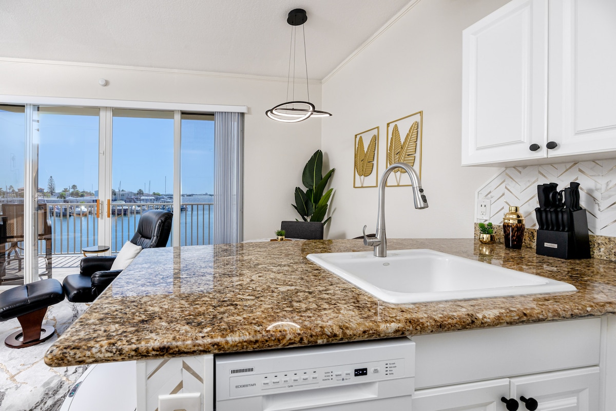 Acorde com vistas para o mar! Saboreie o café da manhã na varanda privativa de 6 metros com vista para a Baía de Boca Ciega, observe os golfinhos, relaxe na piscina aquecida e no spa enquanto aprecia o pôr do sol deslumbrante. Este condomínio tranquilo oferece uma escapadela serena a poucos minutos de Madeira Beach, St. Pete e das atrações locais, perfeito para casais ou viajantes individuais. Destaques: • Vistas diretas para a água • Piscina aquecida, banheira de hidromassagem • Aluguer de barcos, trilhos e Madeira Beach nas proximidades • A 5 minutos das praias do Golfo + a 15 minutos do centro de St. Pete