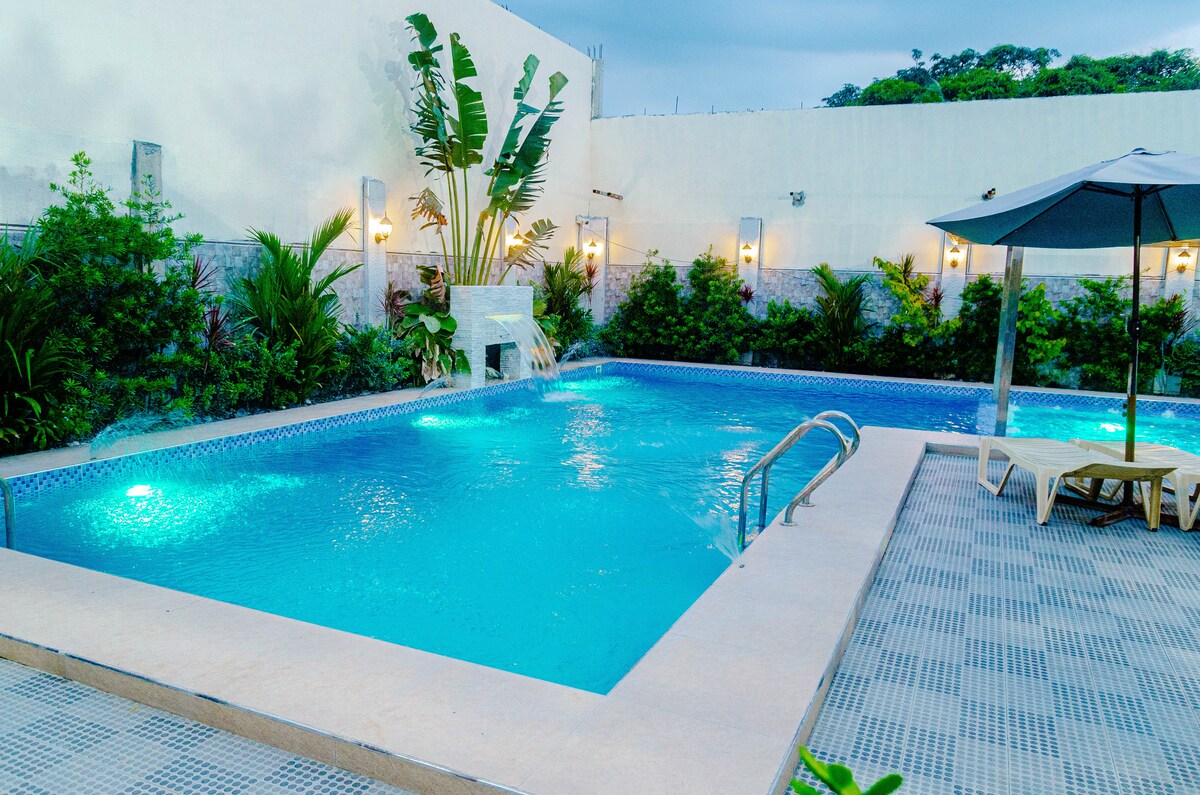 Bem-vindo ao nosso Resort Privado — um resort totalmente privado de 3 quartos perto da Arena das Filipinas. Perfeito para grandes encontros, este anúncio inclui 2 casas de banho interiores privadas, 1 casa de banho exterior, charme nativo e acesso total à piscina, karaoke, cozinha e refeições. São permitidos até 25 hóspedes, mas a configuração de dormir é para 18 hóspedes confortavelmente. Sem partilhas: todo o espaço é seu.