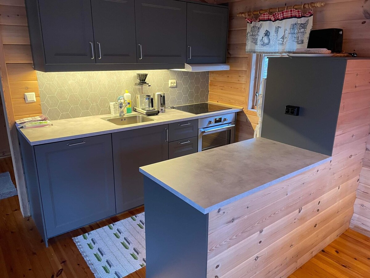 Casa de campo de cerca de 60 metros quadrados com 2 quartos. Cozinha própria com louças. O chalé está em uma área tranquila com 3 outras cabanas. O chalé fica em uma estrada privada e a área é tranquila e pacífica. Há churrasqueira na cabana para noites agradáveis com pôr do sol no fiorde. Há uma lareira na sala de estar e vem com lenha que pode ser usada se ficar frio. Há também aquecimento elétrico em todos os cômodos. Roupa de cama e limpeza estão incluídas no preço.