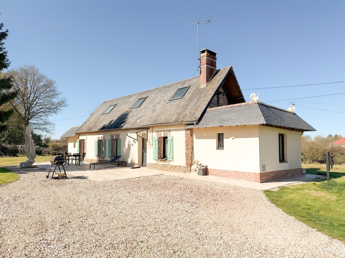 Desfrutará de uma casa de campo familiar, renovada em 2020, numa propriedade de 2 hectares onde vivem algumas ovelhas e cavalos. Típica da Normandia, a casa é muito luminosa e tem abertura para o jardim.Dois terraços, um dos quais coberto, permitem-lhe almoçar no exterior, mesmo nos dias em que o tempo está incerto. 🧺 Limpeza, roupa de cama, toalhas, panos de cozinha e lenha*: INCLUÍDOS Todas as camas serão feitas à sua chegada e a casa será aquecida* (*na época) Wi-Fi de fibra de alta velocidade.