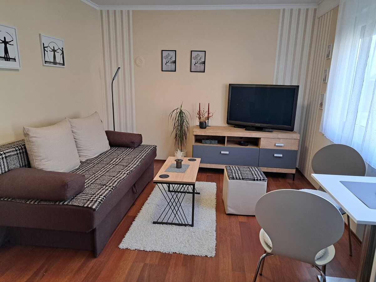 Alugo um apartamento para 2+2 pessoas numa das ruas mais bonitas e tranquilas do centro próximo de Osijek. A apenas 25 metros da ponte pedonal e do famoso passeio "Promenade" ao longo do rio Drava, perto da famosa zona balnear "Copacabana". Do outro lado da rua da propriedade fica o King Tomislav 's Park e vários campos de ténis. Da propriedade tem apenas 250 metros até ao mercado principal e a 500 metros de Tvrđa e ao centro. Estacionamento gratuito no quintal. Uma rua sem estacionamento!