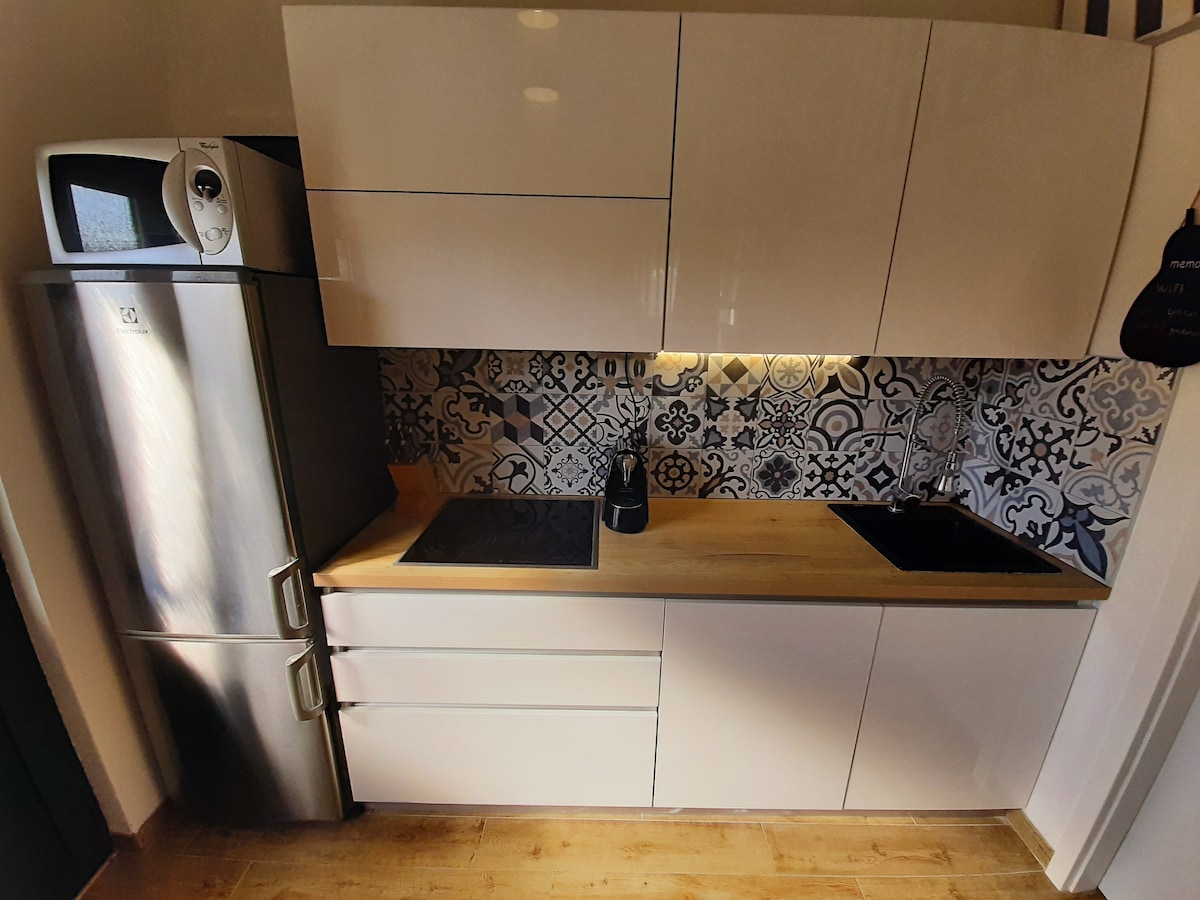 Este apartamento está localizado em uma casa de pedra bem isolada, por isso é muito agradável para se hospedar. Em frente ao apartamento há um terraço, um grande pátio para um canto privado e muita vegetação que criam uma estadia agradável fora do apartamento. Há também uma churrasqueira para preparar refeições.
