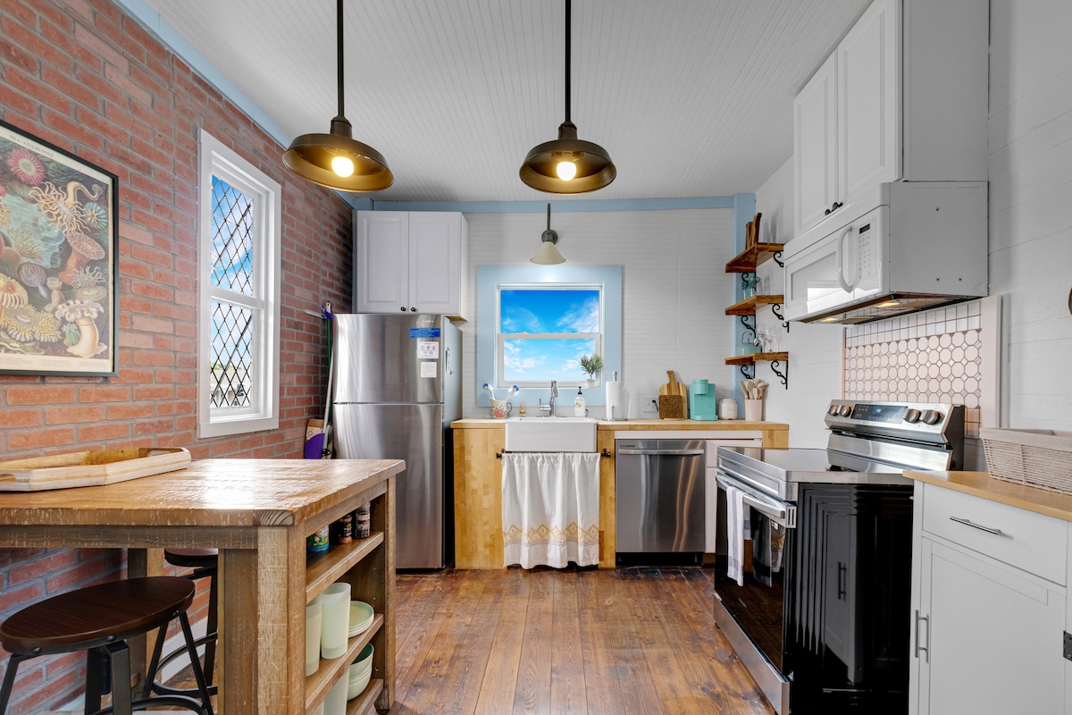 Esta joia incrível de Galveston é destaque na Temporada 4, Episódio 1, "Alley Cat House" de "Restaurar Galveston" na Rede Magnolia! Esta bela casa foi originalmente construída na década de 1920, recentemente renovada com pisos de madeira totalmente restaurados e os últimos confortos de uma casa moderna. O interior das casas está acabado com madeira recuperada encontrada na Ilha Galveston. Esta casa de dois quartos e uma casa de banho tem 600 pés quadrados de charme absoluto!