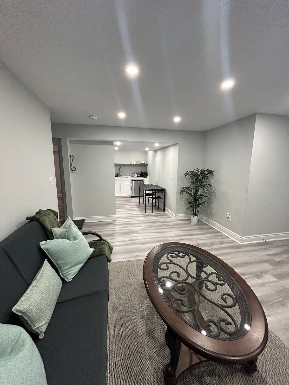 Enjoy a stylish and peaceful stay at this centrally located one-bedroom lower-level unit, perfect for both leisure and business travelers. With your private entrance, parking, and all the essentials, it’s your ideal home away from home. Features include a full kitchen, bathroom, internet, smart TV, one Queen and one sofa bed, and a functional workspace. Steps from FreshCo, Walmart, restaurants, and services. Minutes to Vaughan Mills, Canada’s Wonderland, Cortellucci Hospital and transit.
