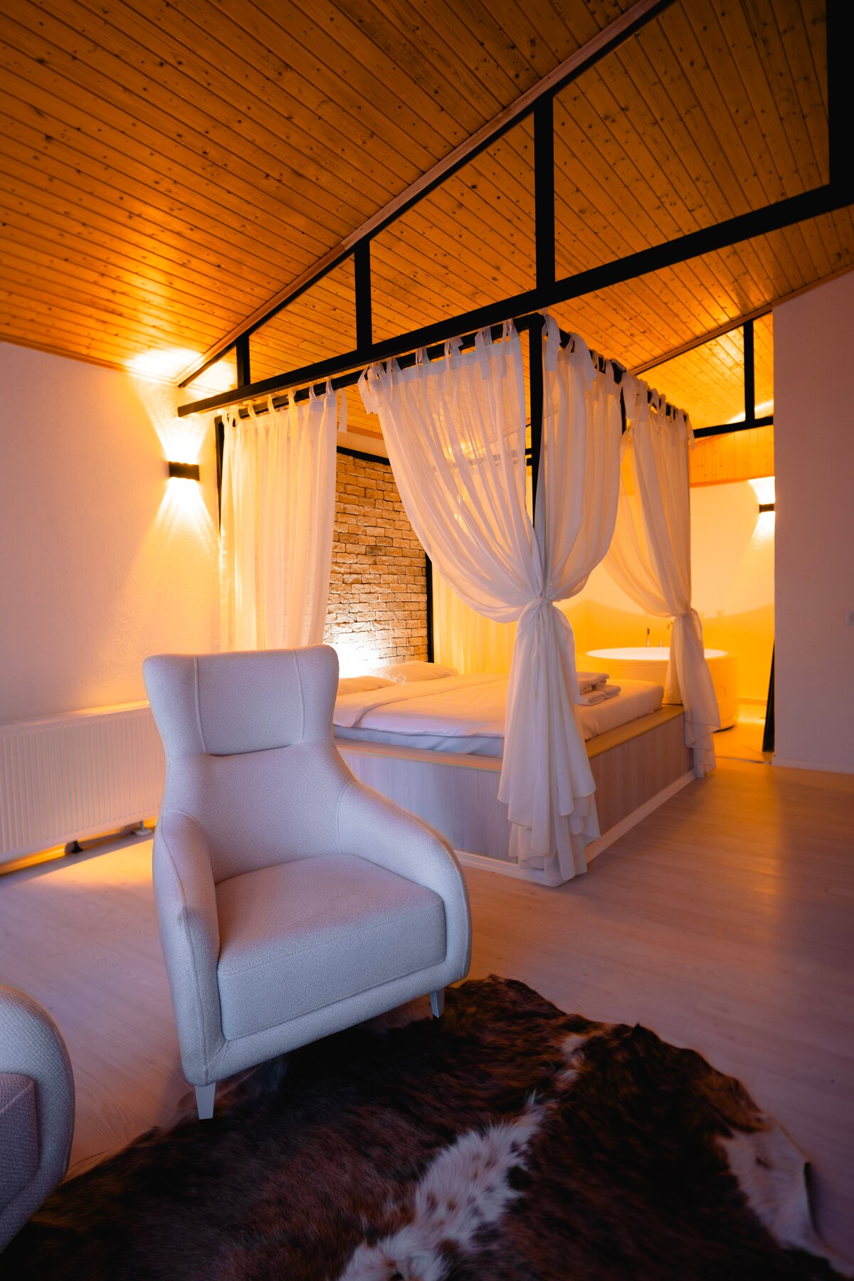 Numa floresta exuberante, estamos felizes por ver todos aqueles que estão à procura de alternativas para aqueles que querem acordar com os sons dos pássaros na nossa villa. O nosso conceito é ideal para aqueles que querem passar tempo na atmosfera da aldeia e no jardim. A nossa villa é completamente de madeira e o quarto é isolado. Preparamos o mirante onde pode passar o seu tempo de verão e a lareira onde pode desfrutar de café nos dias de inverno. Diverte-te.