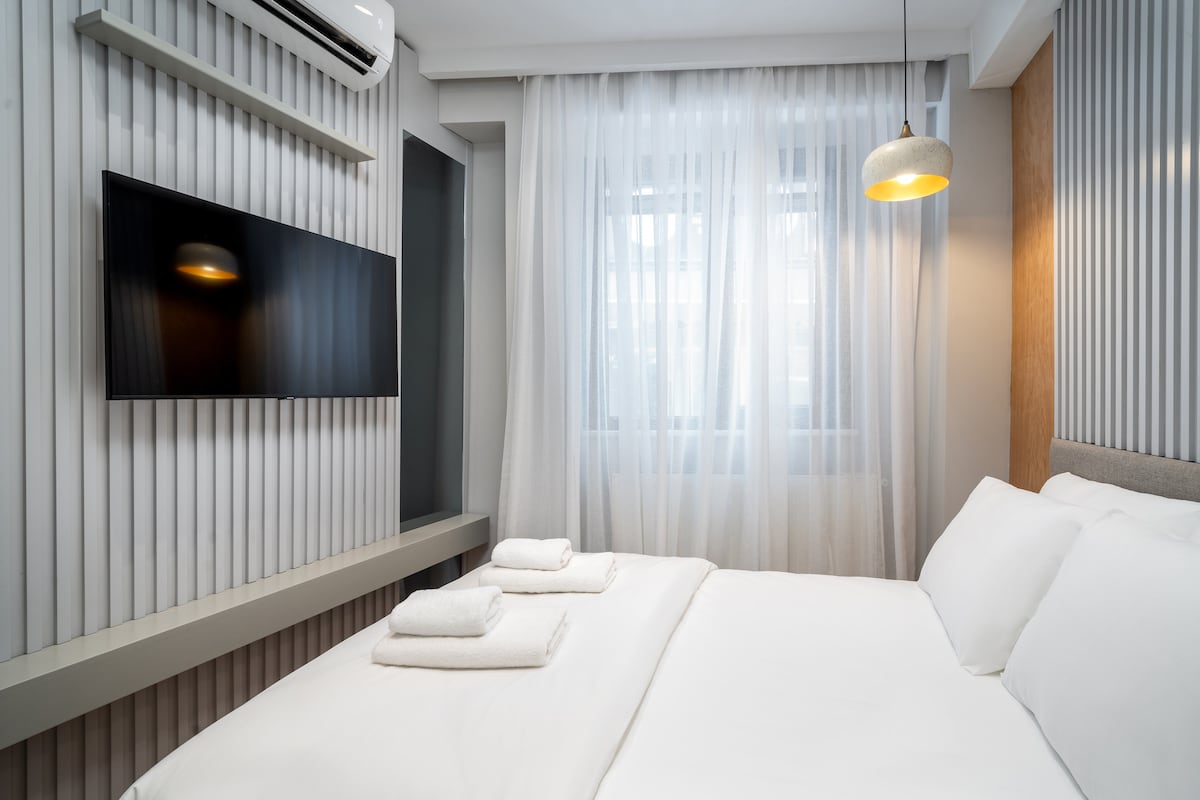 Este charmoso apartamento hotel oferece uma mistura única de simplicidade e elegância com seu design moderno e refinado. Perfeito para duas pessoas ou um casal, inclui uma confortável cama de casal, uma cozinha bem equipada, um banheiro privativo e uma TV inteligente de 40 polegadas. Janelas grandes. Idealmente localizado a poucos passos da Costa de Ortaköy, da Ponte do Bósforo, das famosas lojas de kumpir e waffle e do coração histórico de Ortaköy, no centro de Istambul.