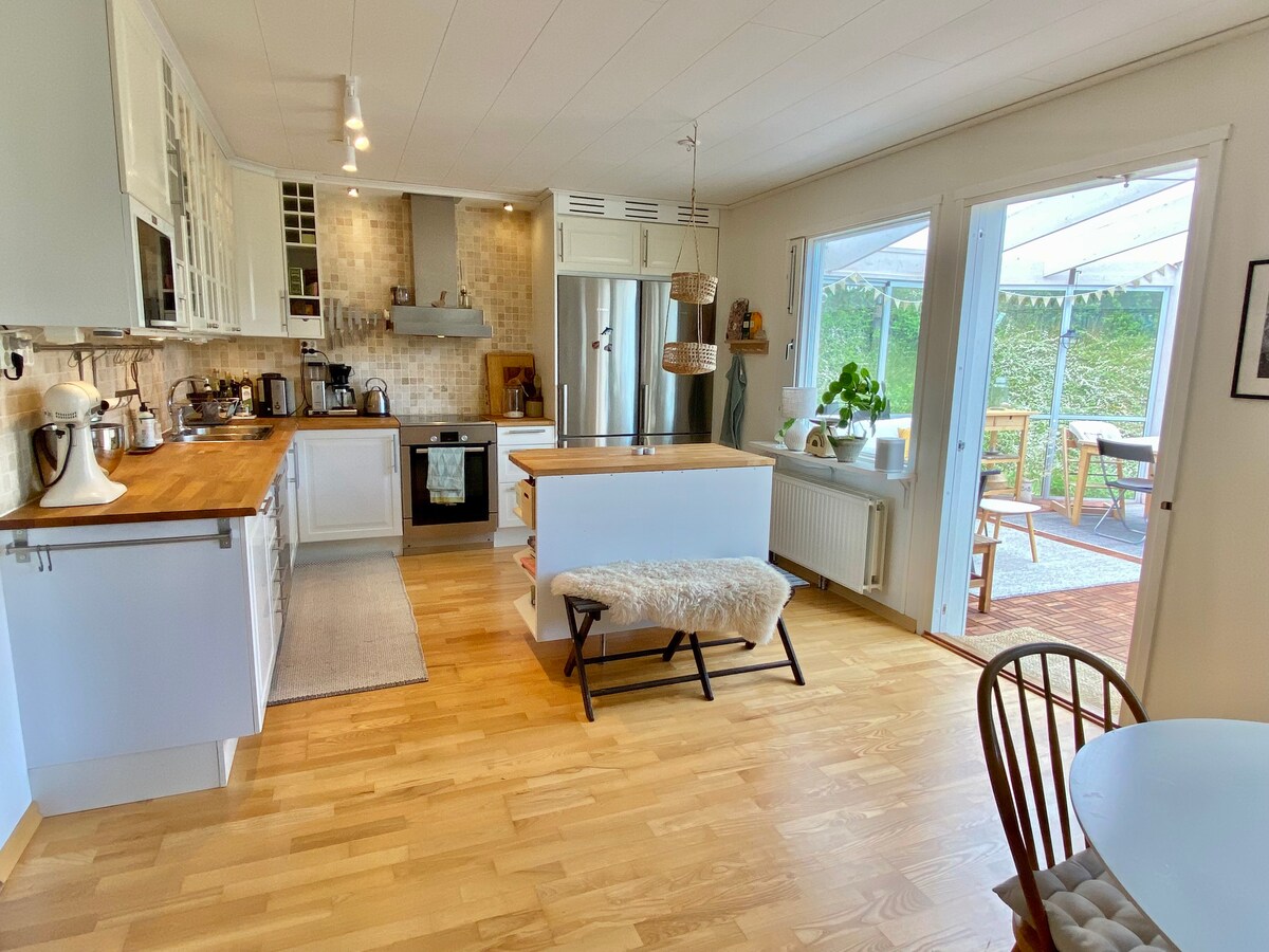 Uma minivila única recém-construída em estilo escandinavo moderno nos arredores da cidade de Estocolmo! Maravilhosa para uma estadia relaxante a dois ou um grupo de 4. Aqui você vive em um bairro residencial tranquilo, perto da natureza e da cidade de Estocolmo. Perfeito se você quiser visitar Estocolmo e, ao mesmo tempo, ficar mais relaxado e poder se divertir tanto dentro de casa quanto ao ar livre. Além disso, você tem uma TV de 55" com NETFLIX no andar superior para uma noite perfeita em casa.