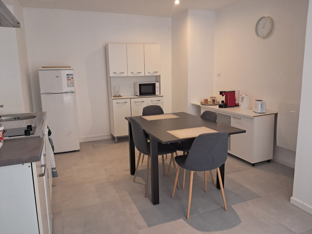 2 hóspedes, 1 quarto, 1 cama de casal de 140 cm, 1 passadeira, 1 sofá BZ, 1 casa de banho com chuveiro, estacionamento privado gratuito, um terraço de madeira de cerca de 10 m2, Wi-Fi, cozinha equipada. Novo apartamento tipo T2, 30 m2, localizado a 3 km de Beziers e a 10 minutos de carro das praias. Muito tranquilo. Zona rural. Recomendado para 2 adultos (o apartamento não é adequado para crianças, exceto adolescentes) O alojamento é na extensão da minha casa, a sua entrada é totalmente independente.