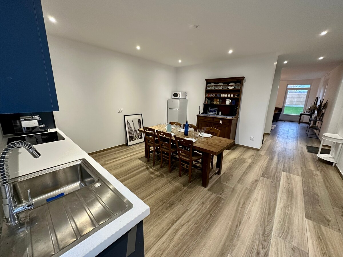 Détendez-vous dans ce logement calme et élégant. Un appartement confortable. A l’étage :une cuisine lumineuse ainsi qu’une salle de bain. Certes petite, elle a été pensée pour vous offrir un maximum de confort grâce à une baignoire balnéo spacieuse pour vous détendre en duo avec ses options jets/massages. Au rez de chaussée, un salon avec lit convertible et petite chambre attenante. Une baie vitrée vous apportera luminosité et vous offrira un accès sur un extérieur avec table .