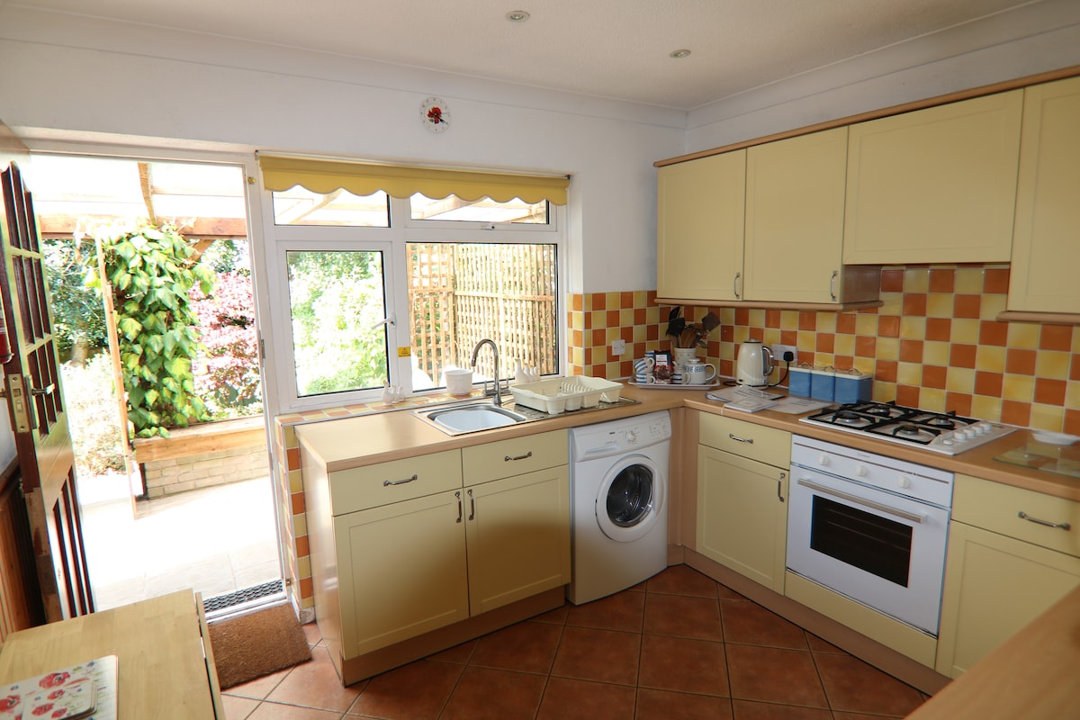 Bangalô moderno em uma região tranquila de Romsey, nível a pé da cidade e estação ferroviária. Conexões de viagem para Southampton, Winchester e Salisbury, perto da New Forest. Estacionamento na rua disponível. Cozinha com utilitários Bosch, incluindo máquina de lavar roupa e máquina de lavar louça, forno duplo. Micro-ondas disponível. Bancada para café da manhã. O banheiro tem banheira com chuveiro suspenso. Uma cama de casal e sala de estar em plano aberto/estufa, incluindo área de jantar. Portas do pátio para o deck e jardim privativo nos fundos.