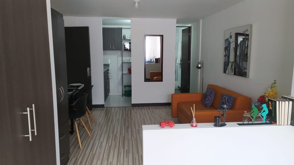 Located in the best area of Bogotá. ideal for business trips, leisure and small families that want to stay in a studio apartment. You will be in walking distance from three main shopping centers, top restaurants, gyms, supermarkets, bars, clubs, parks, coffe shops, hospitals and public trasnport stations in the city. This brand new studio apartament offers 24/7 doorman security a panoramic terrace on the building´s top floor, jacuzzi and front view to one of Bogota´s principal parks, el Virrey