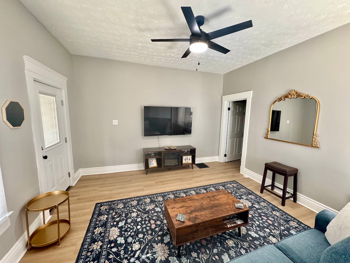 Welcome to our cozy, Danville, Kentucky bungalow. Nestled on a quiet lane a few blocks from Main Street, this is the perfect getaway for those looking to explore the best of the area. This comfortable hideaway is less than a mile from Downtown Danville, Centre College, and Ephraim McDowell Hospital. It is situated on Kentucky's Bourbon Trail, and just 45 beautiful miles south of the world-famous Keeneland Turf Track in the heart of horse country.