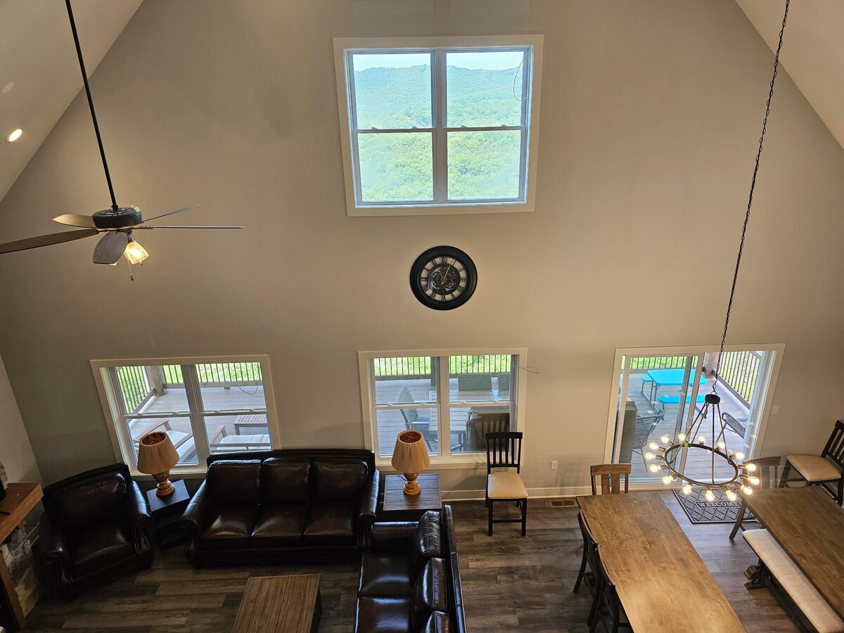 Bem-vindo ao Mountain Majesty Retreat, um refúgio luxuoso aninhado em meio à beleza deslumbrante das Montanhas Ozark. Este refúgio encantador possui 9 quartos espaçosos, garantindo amplo espaço para grandes grupos ou famílias que procuram uma escapada inesquecível. Ao entrar, esteja preparado para ser cativado pelas deslumbrantes vistas panorâmicas das majestosas Montanhas Ozark que o cercam. Delicie-se com o relaxamento enquanto mergulha na banheira de hidromassagem privada, apreciando os sons serenos e relaxantes da natureza.