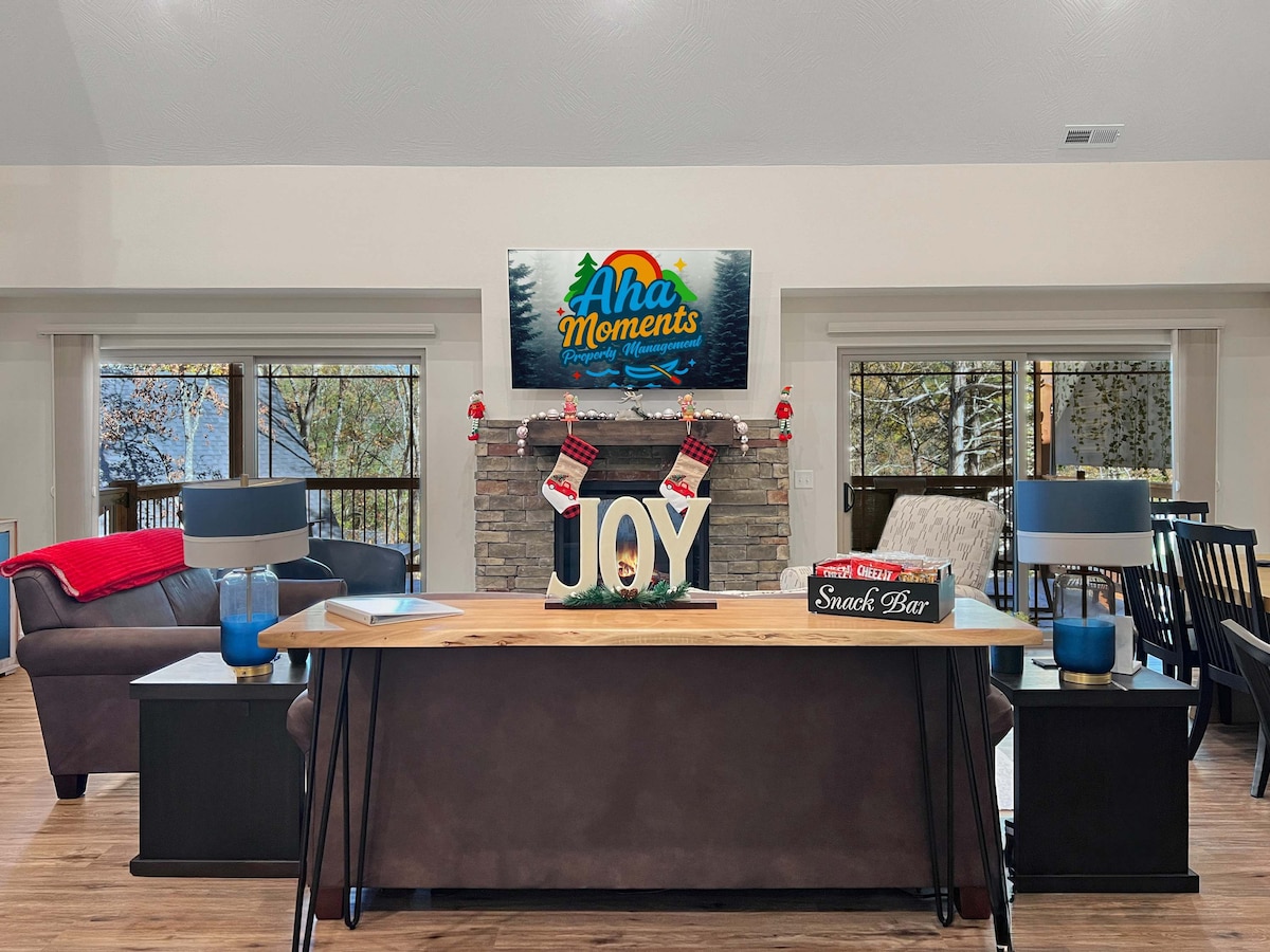 Desfrute de férias aconchegantes e relaxantes com sua própria cabana privativa na floresta. Este chalé está localizado na bela Stonebridge Village. A oito minutos da Silver Dollar City e a poucos minutos do Lago Table Rock/Marina Indian Point. Aproveite os fogos de artifício da Silver Dollar City do seu deck! A cabana foi decorada com carinho, incluindo novo carpete, móveis, eletrodomésticos e tinta fresca em 2023. Chamado Loose Moose Lodge com base na história histórica de um alce migrando para o Missouri.
