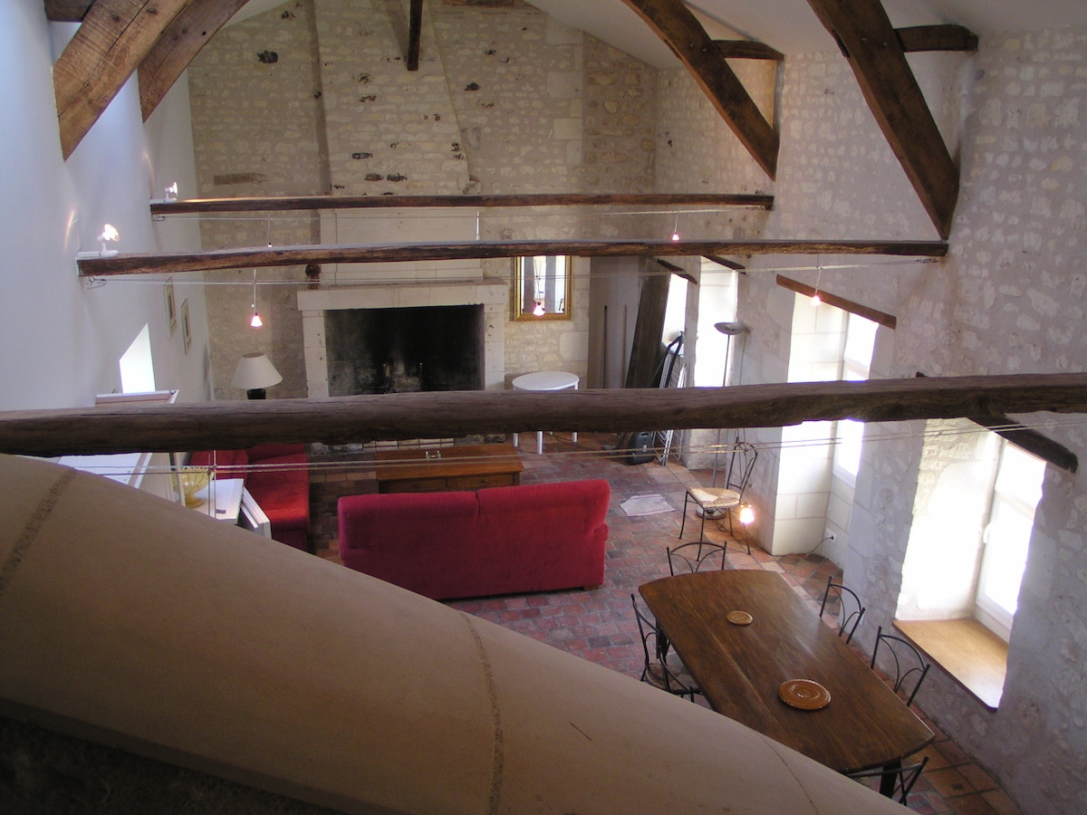 Antigo moinho (de óleo de nozes) restaurado, combinando o moderno com o charme da pedra. Esta casa de 27 m² está localizada nas alturas de Chinon, não muito longe da fortaleza real. Localizada a 1,3 km do centro da cidade (25 minutos a pé, possibilidade de pegar um elevador gratuito)